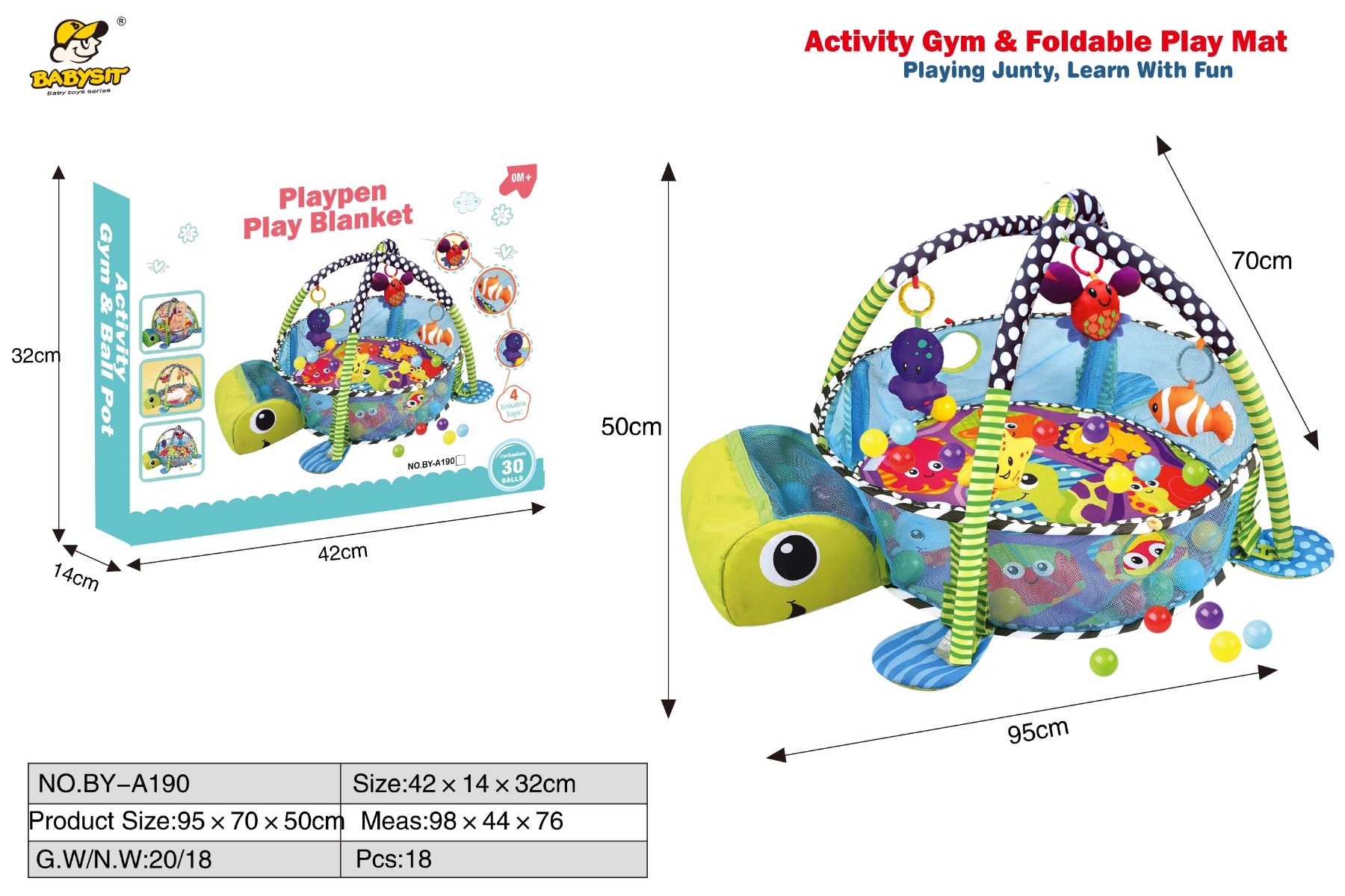 Артикул: 918-8023Килимок для малюків арт. 918-8023 (48шт)з брязкальцями, 8 кольорових кульок у сумці 42*38*6,5см.
