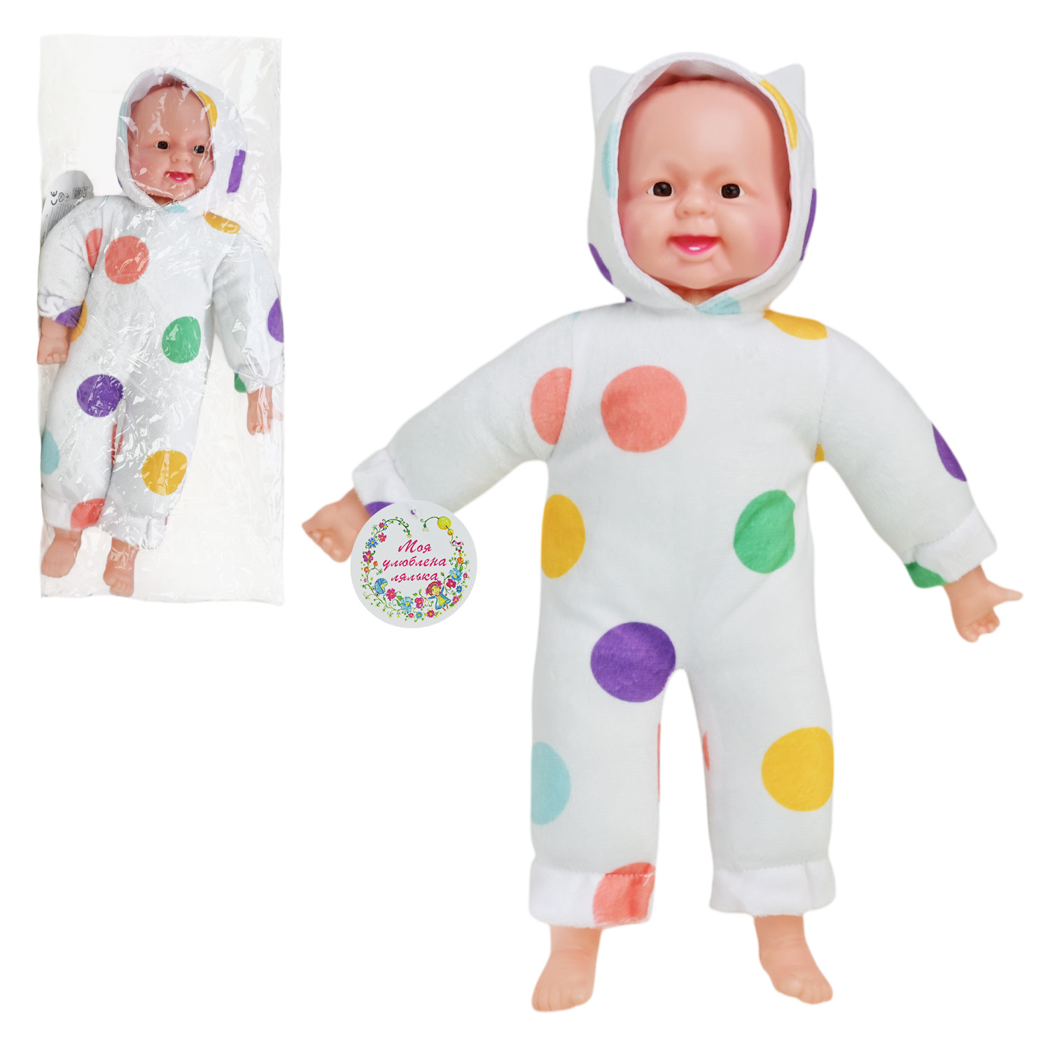 Артикул: SEL-0006Пупс муз. арт. SEL-0006 (60 шт) 4 види,батар., м’яконабивна, хохотун, пакет 43 см