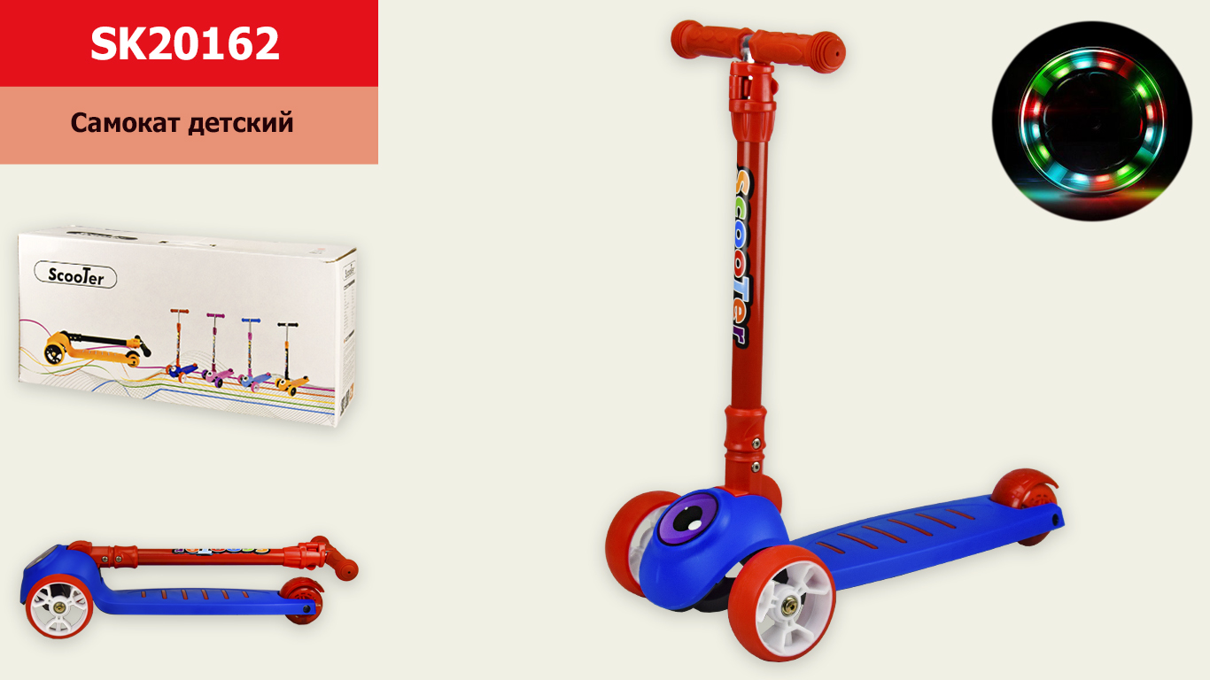 Артикул: SK20162Самокат дитячий 4-х коліс. SK20162 (6шт) синій, колеса PU 135mm*40 мм зі світлом