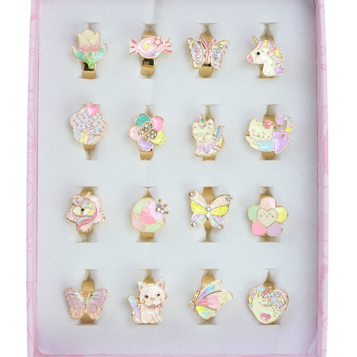 • У наборі представлено 16 кілець, які мають різний дизайн – це унікальний подарунковий набір, що дає можливість мати одразу велике різноманіття кілець.