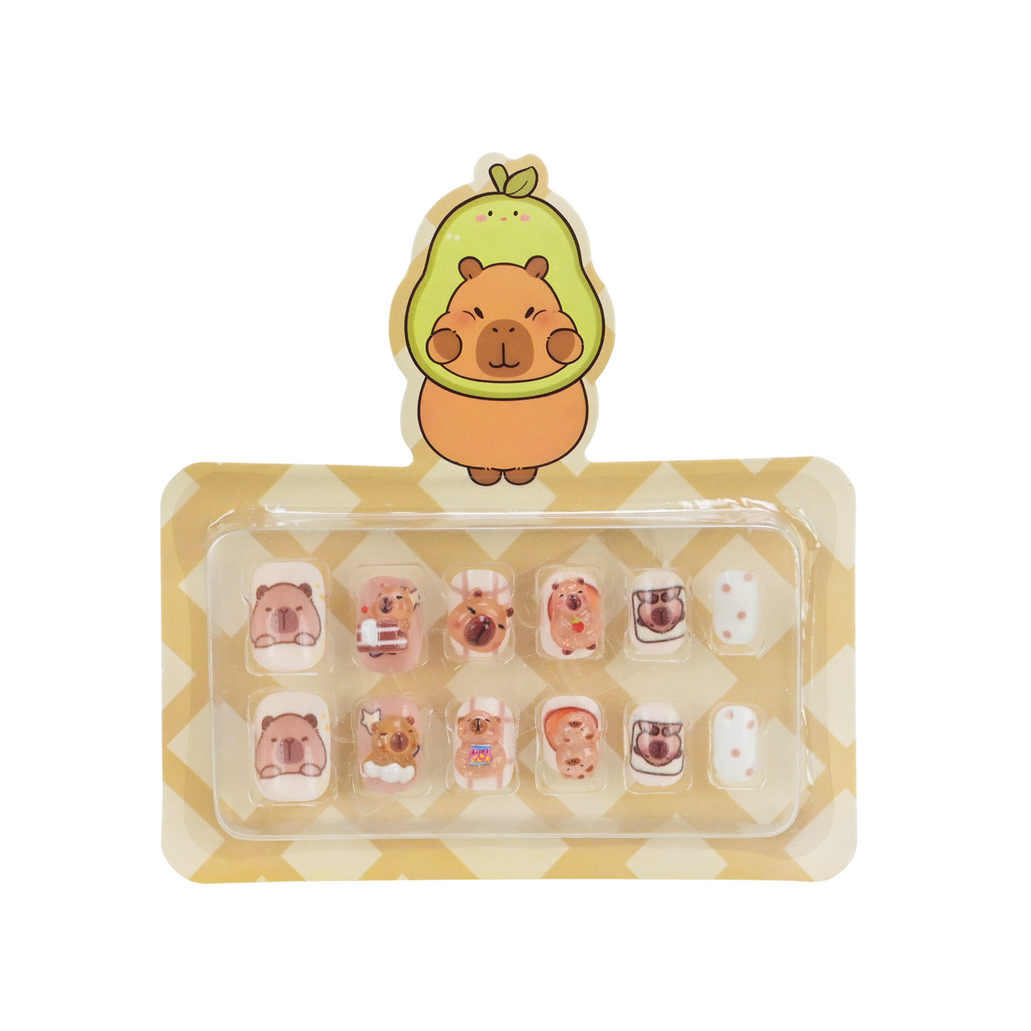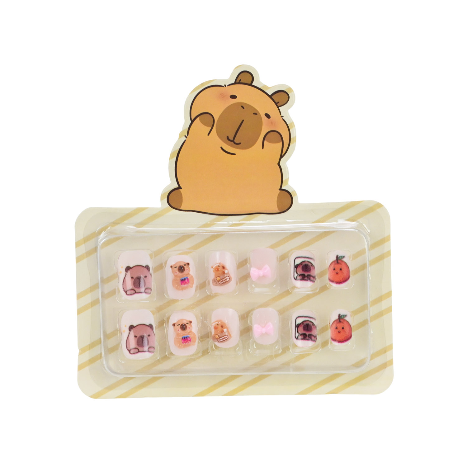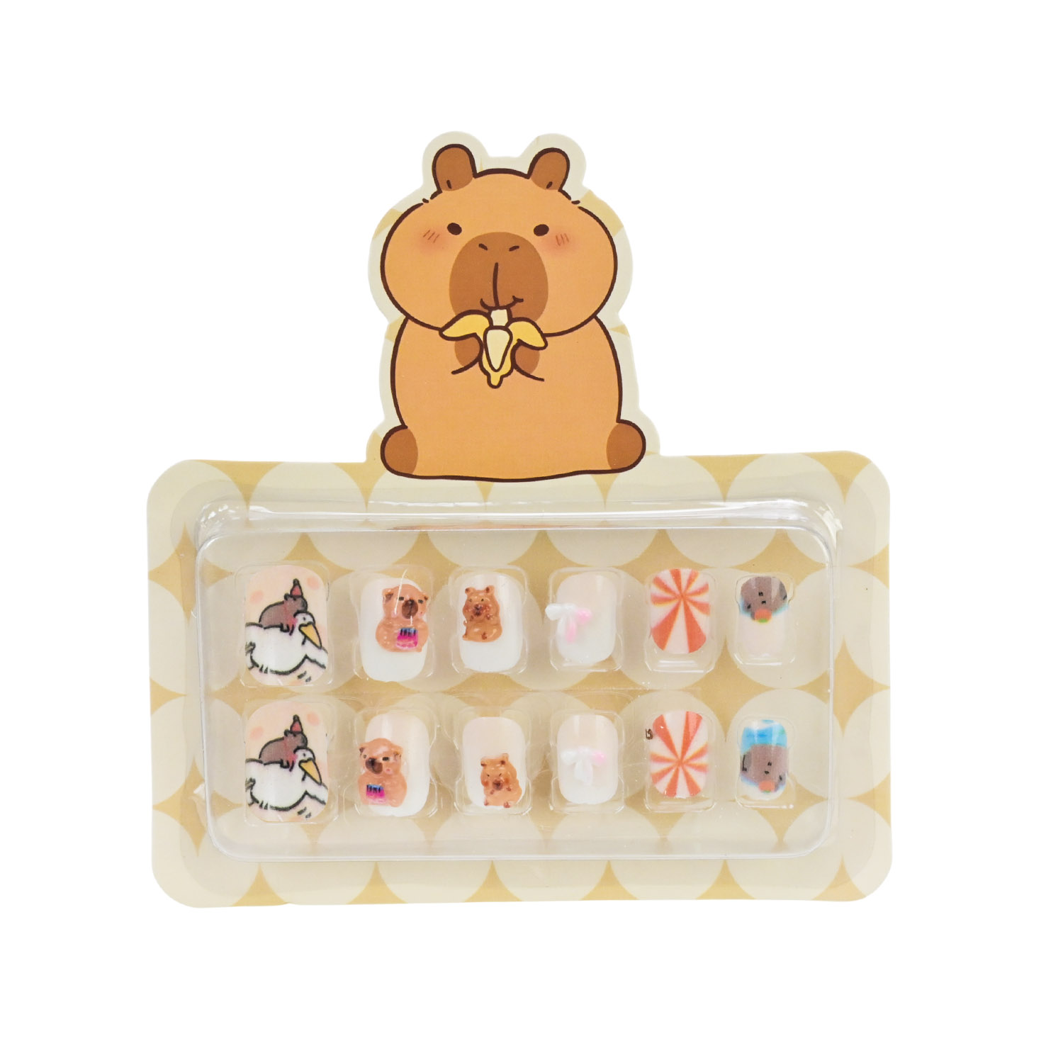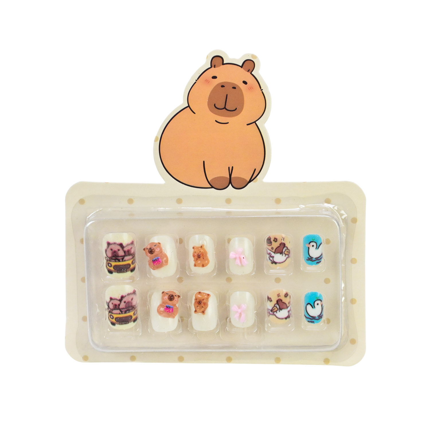 • В асортименті є 8 видів дизайнів нігтів з оригінальними малюнками милої капібари..
