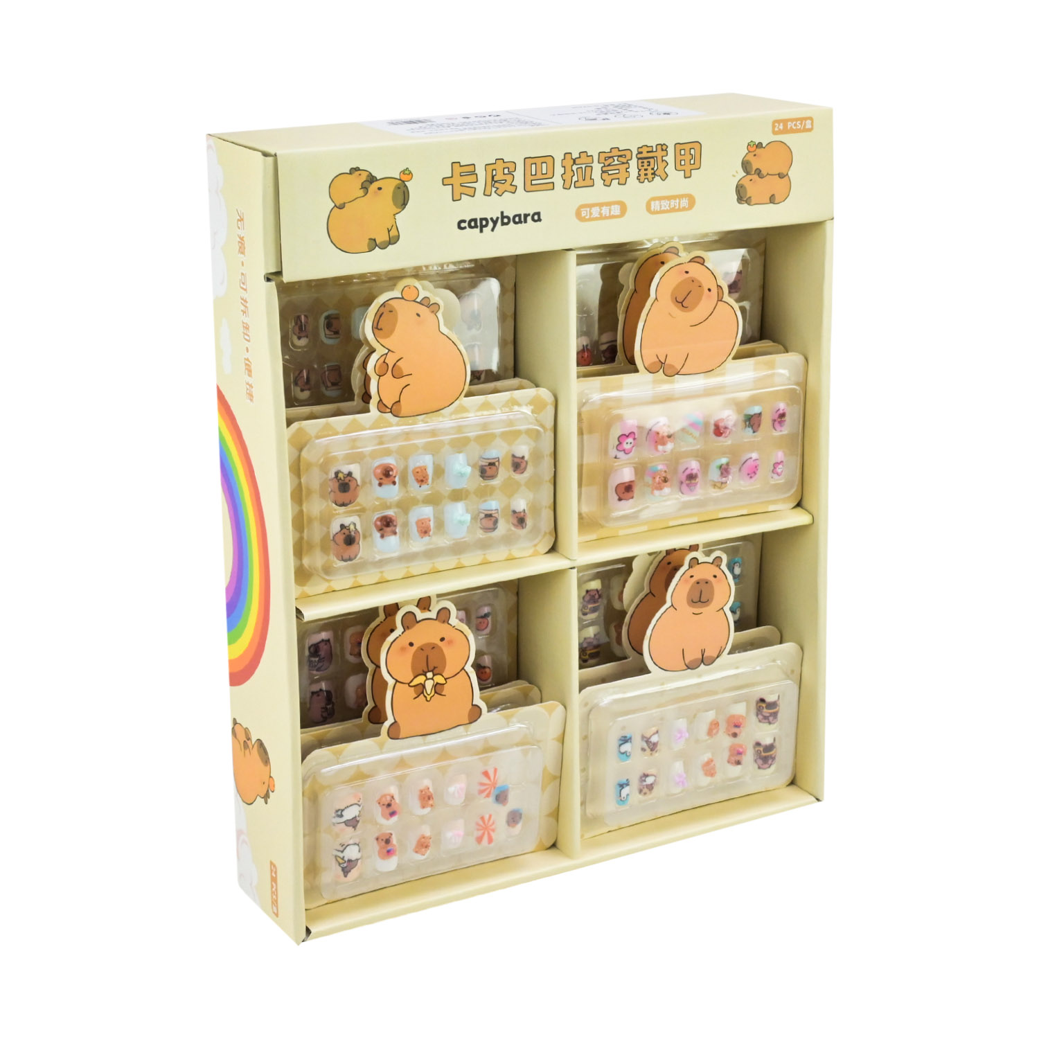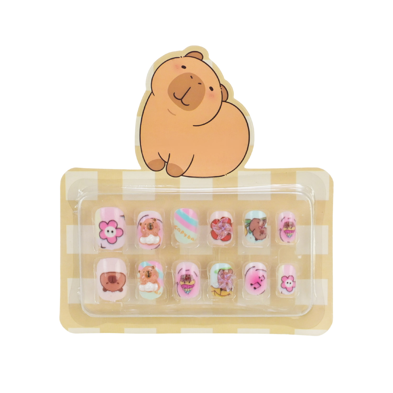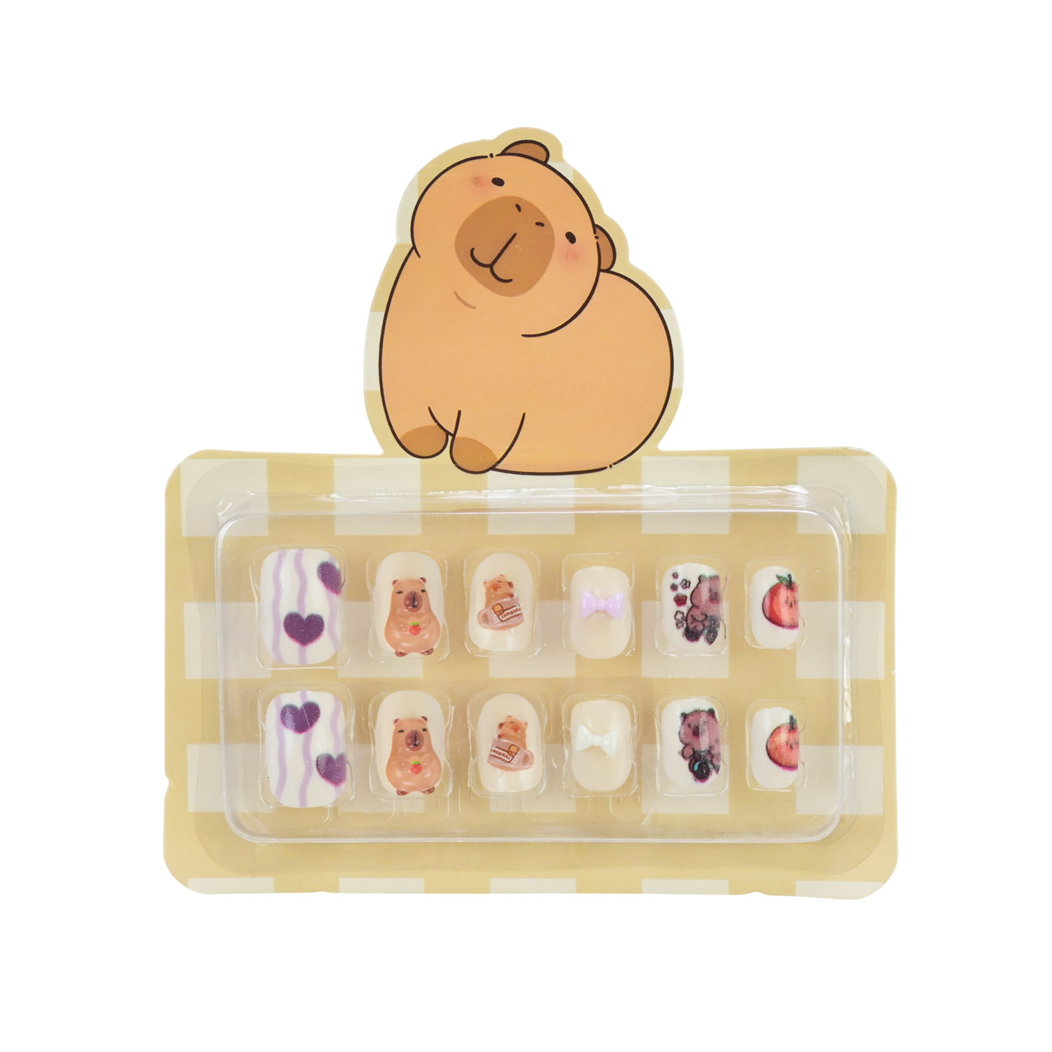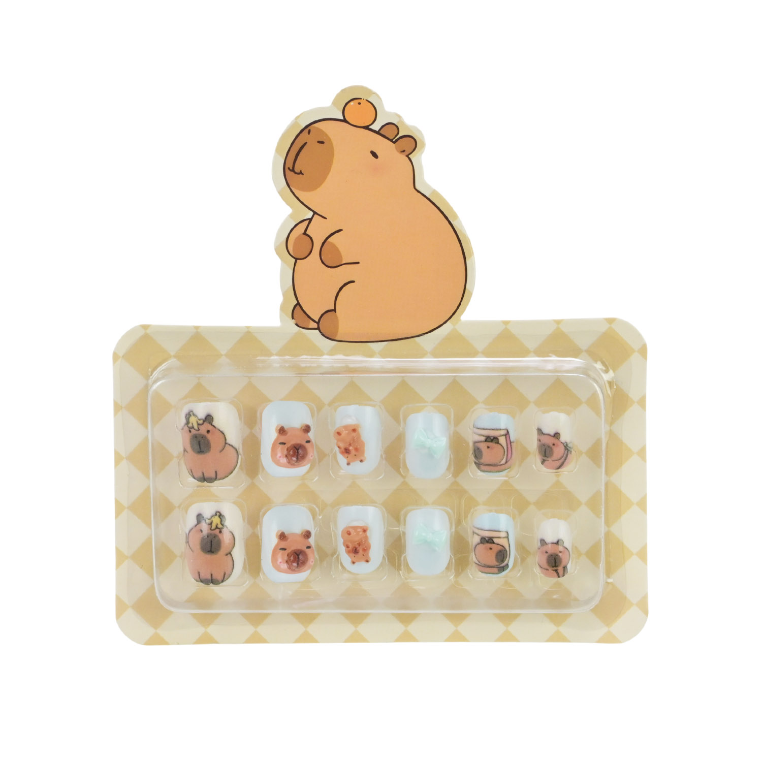 • В асортименті є 8 видів дизайнів нігтів з оригінальними малюнками милої капібари..