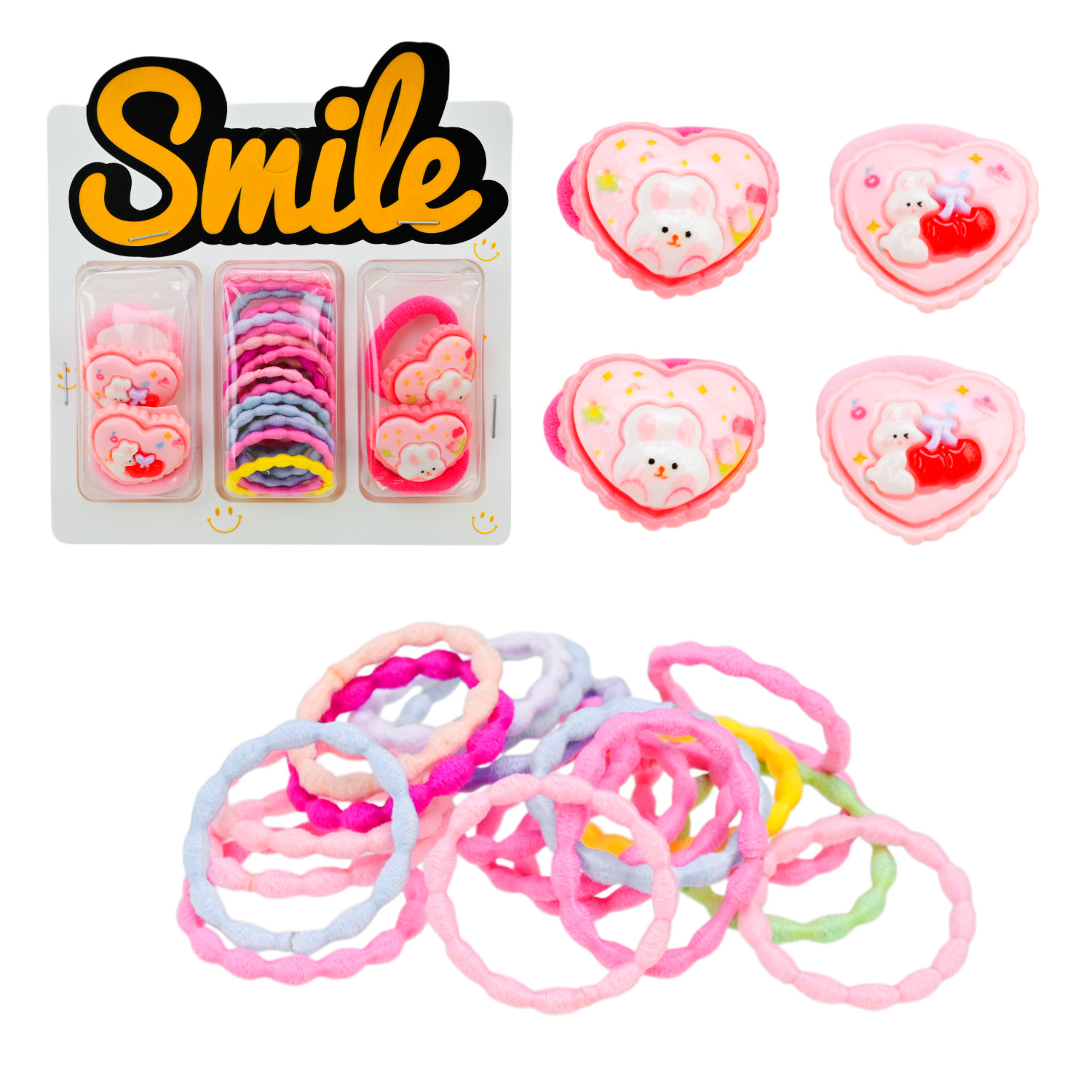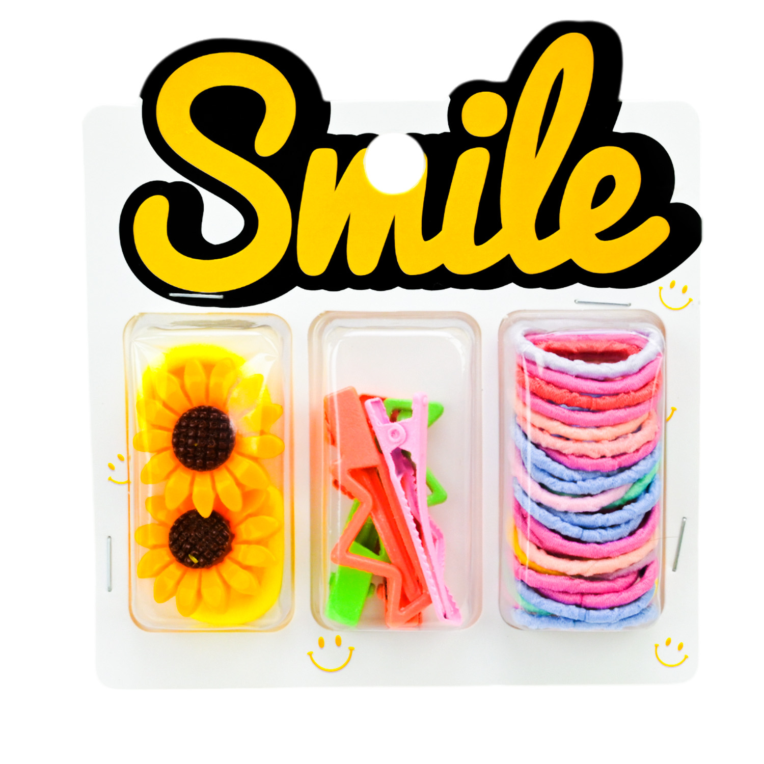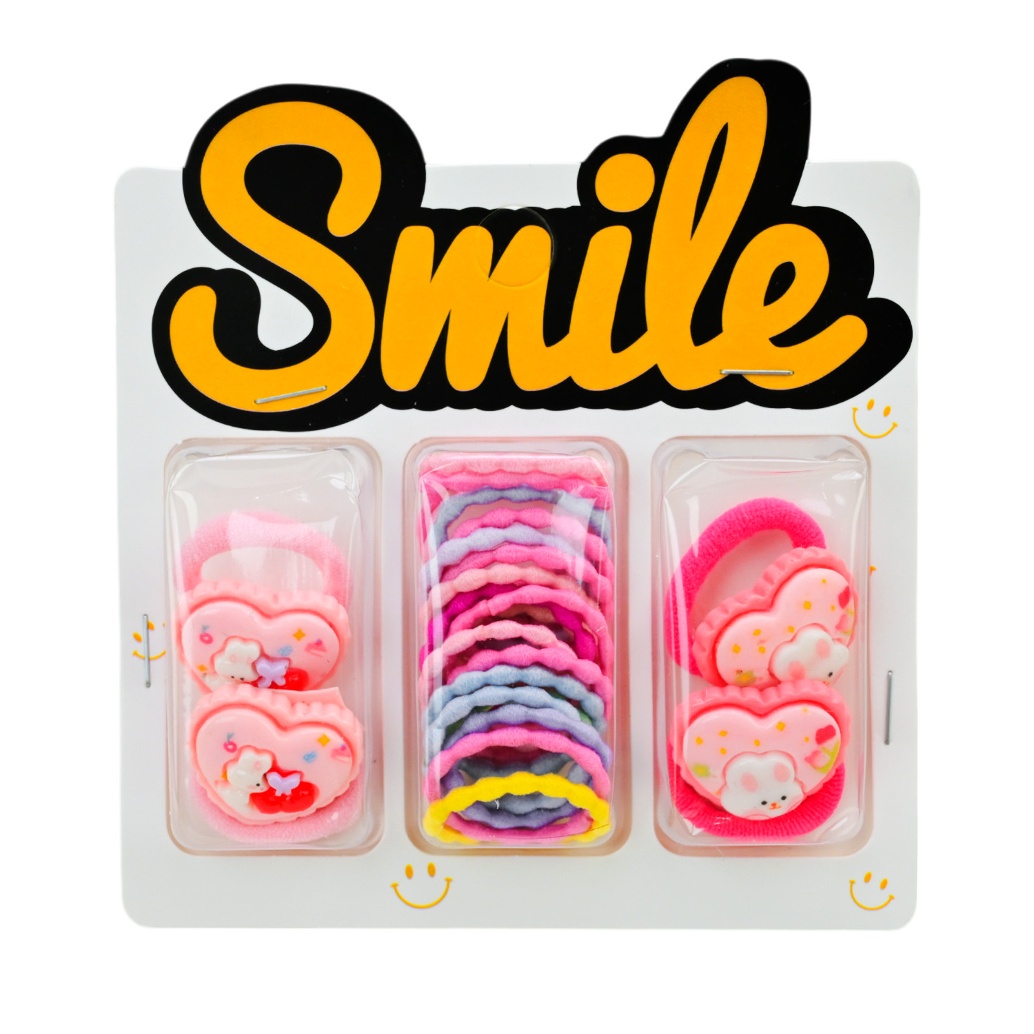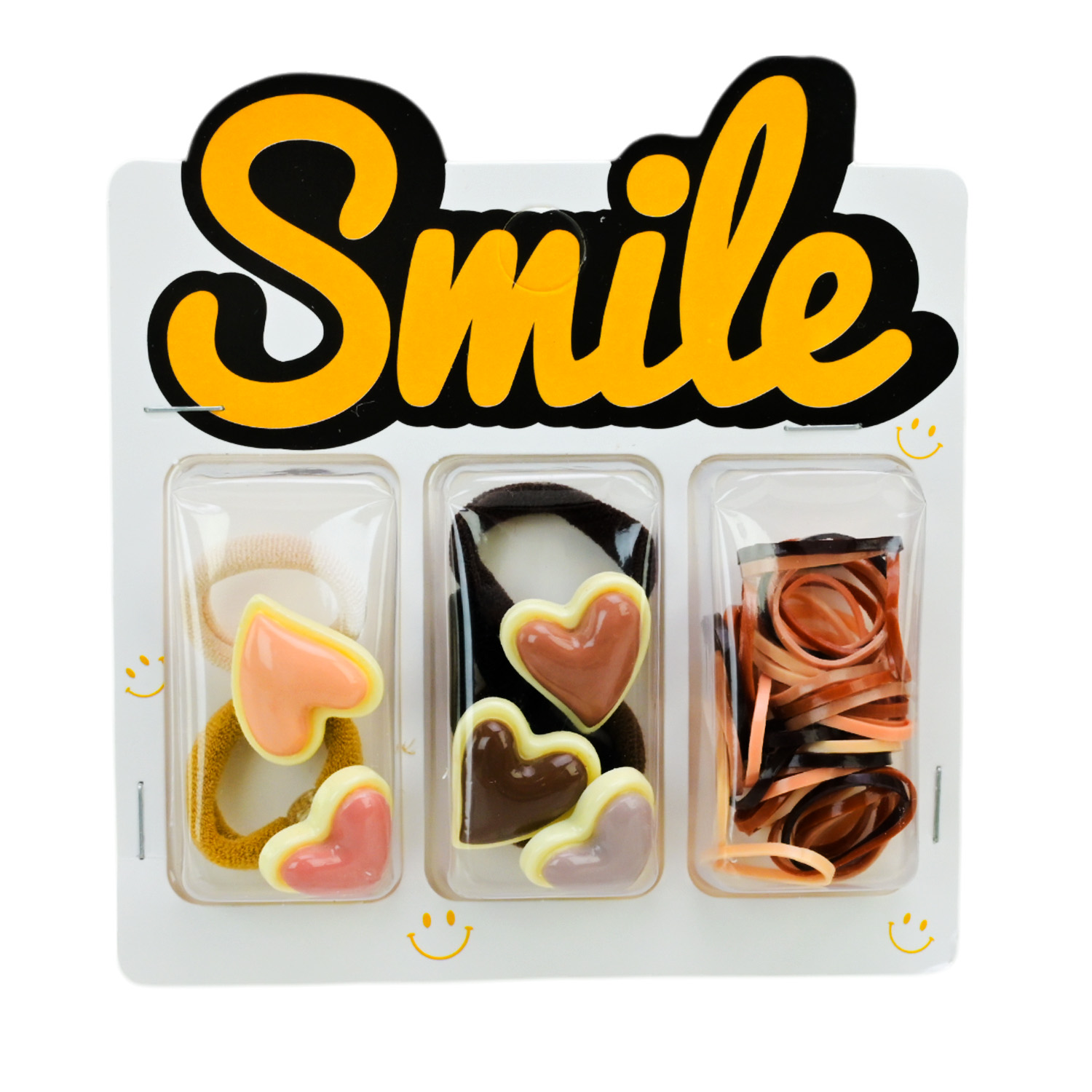 Аксесуари для волосся арт. CN240710 (180шт) мікс 6 видів, набір резиночки та заколки для волосся, на планшетці 10,5*1,5*11 см