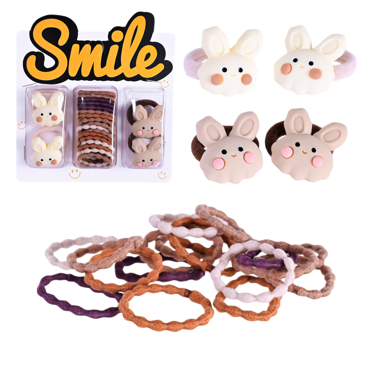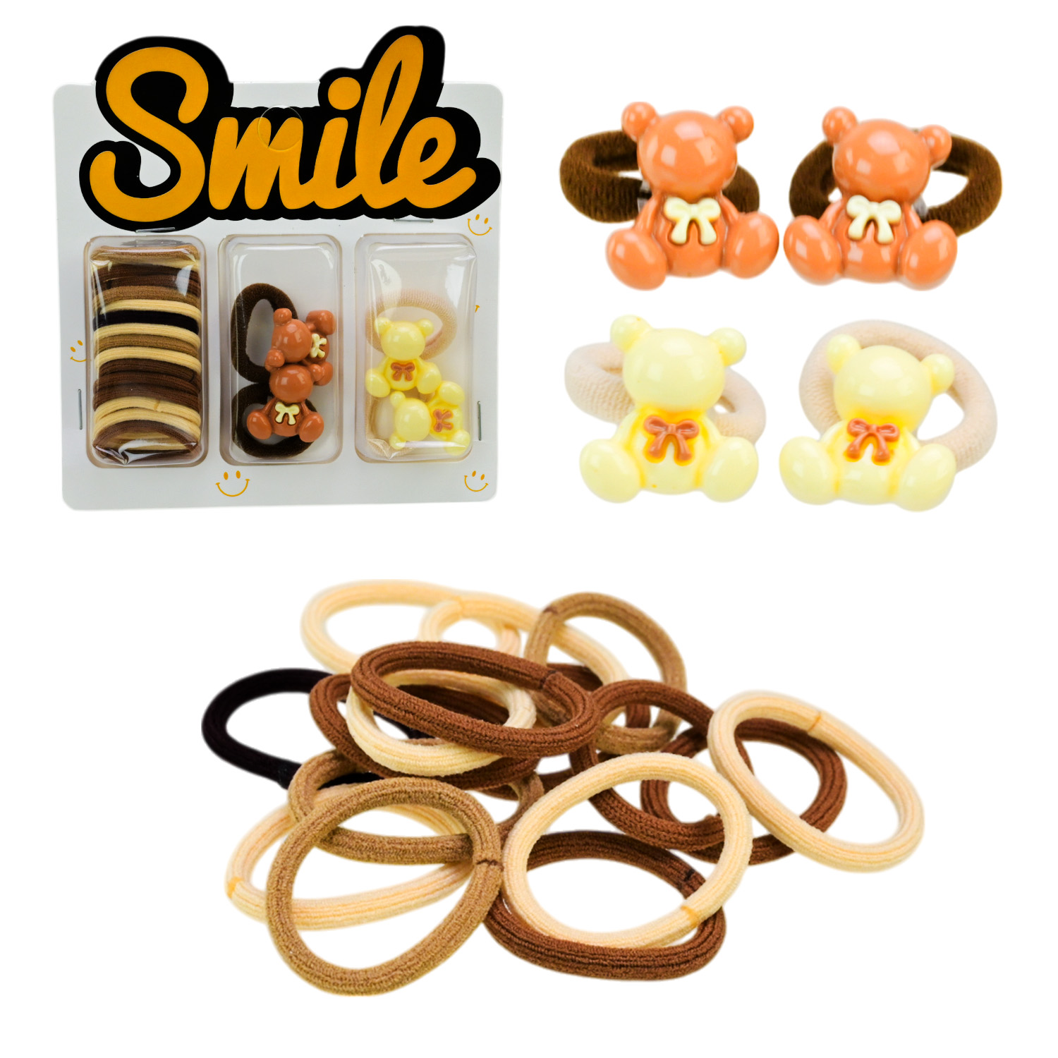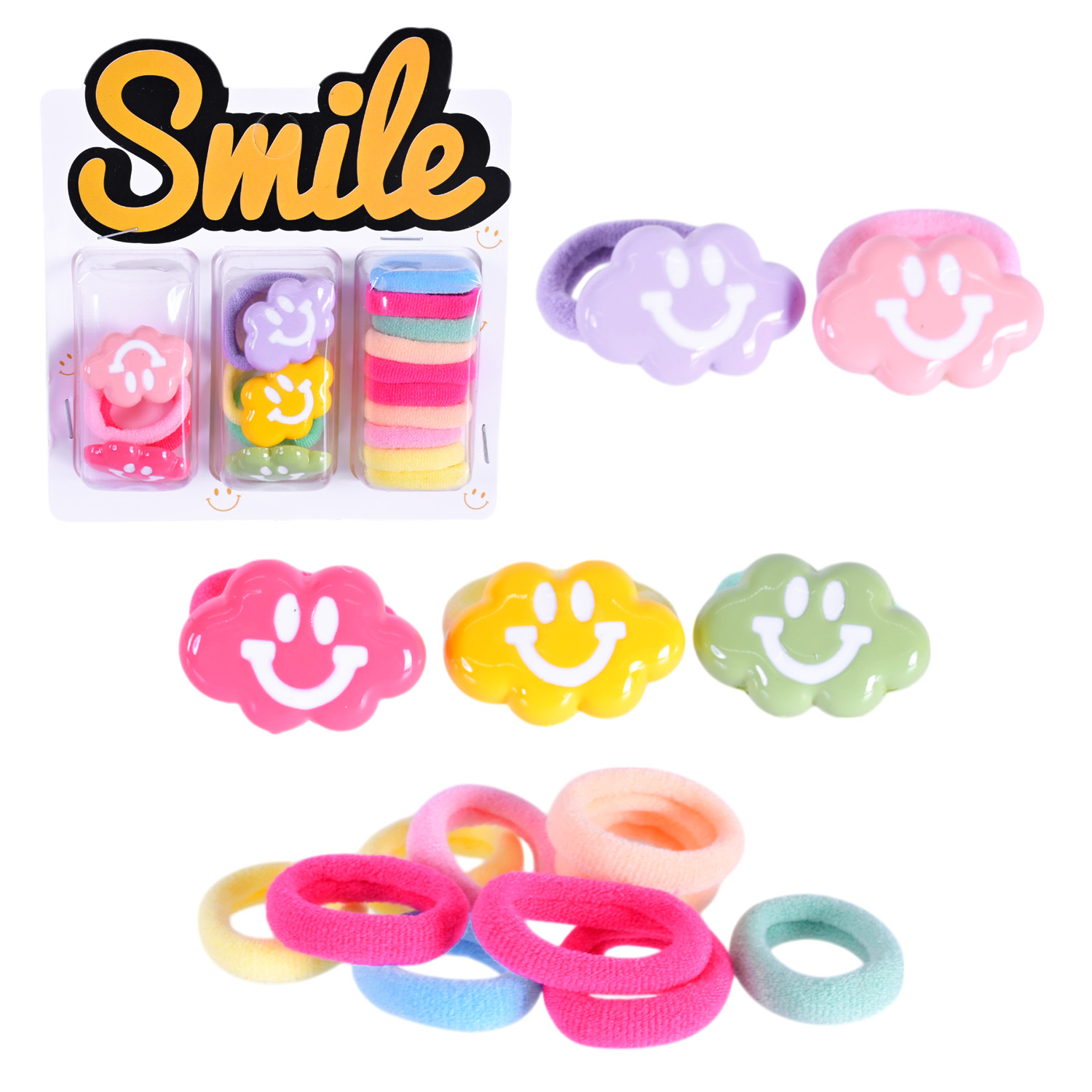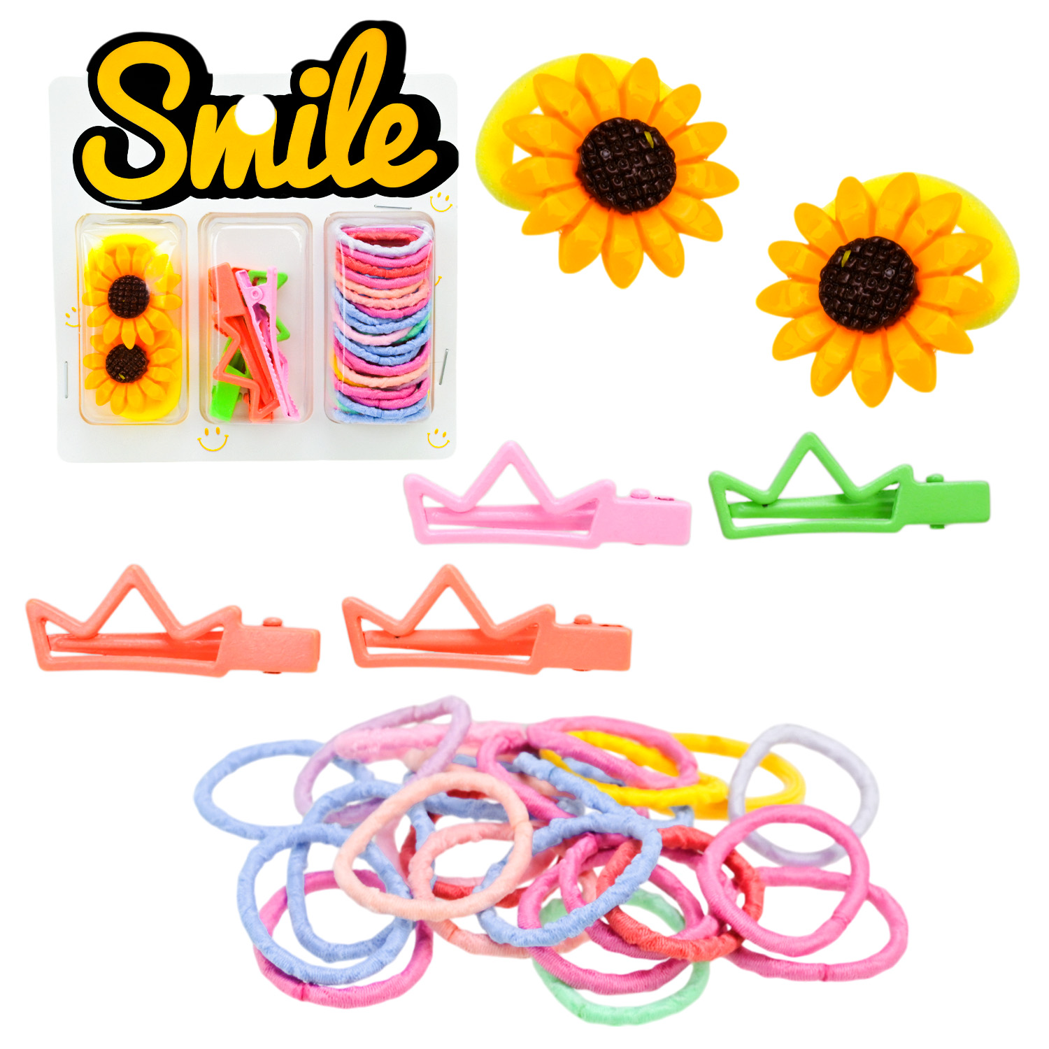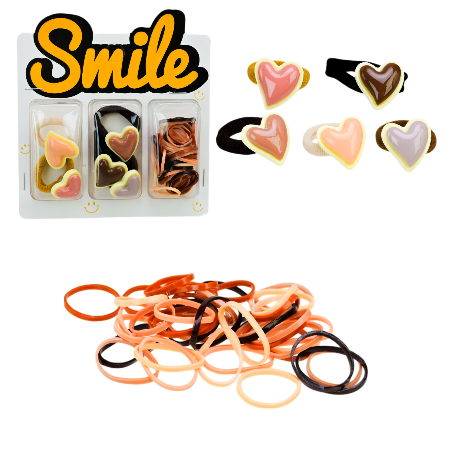 Аксесуари для волосся арт. CN240710 (180шт) мікс 6 видів, набір резиночки та заколки для волосся, на планшетці 10,5*1,5*11 см