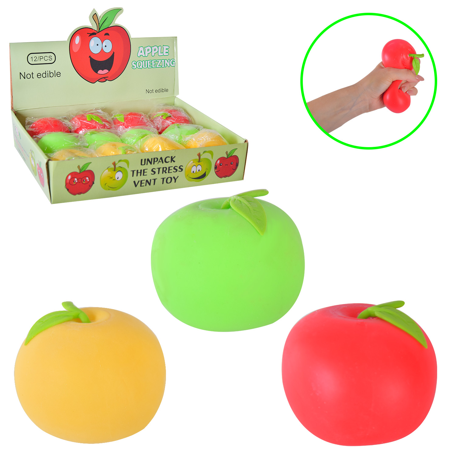 Антистрес арт. AN4338 (288шт) яблуко, 6см, 3 кольори, 12 шт. дисплей боксі/ціна за шт/