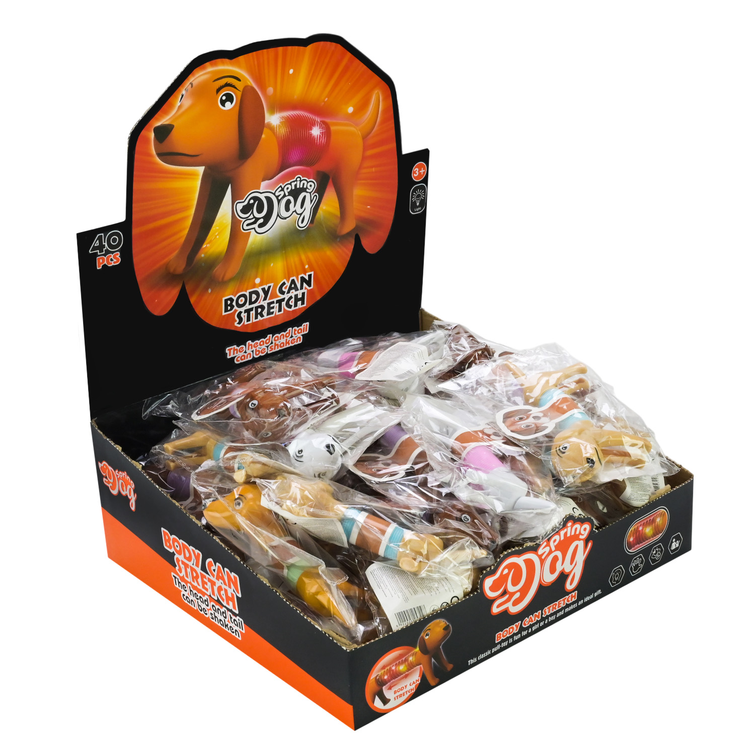 Антистрес арт. K25722 (960шт/2) песик зі світлом 14см розтяг до 24см 40шт диспл. бокс/ціна за шт/ пакет 15*3*10 см, дисплей 30*28*11 см