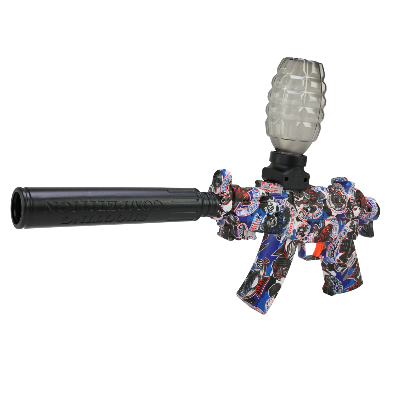Іграшковий автомат, що стріляє гелевими кулями — це іграшка, яка занурює у світ справжніх баталій! Стильний корпус у яскравому графіті-дизайні одразу привертає увагу та робить гру ще більш цікавою.