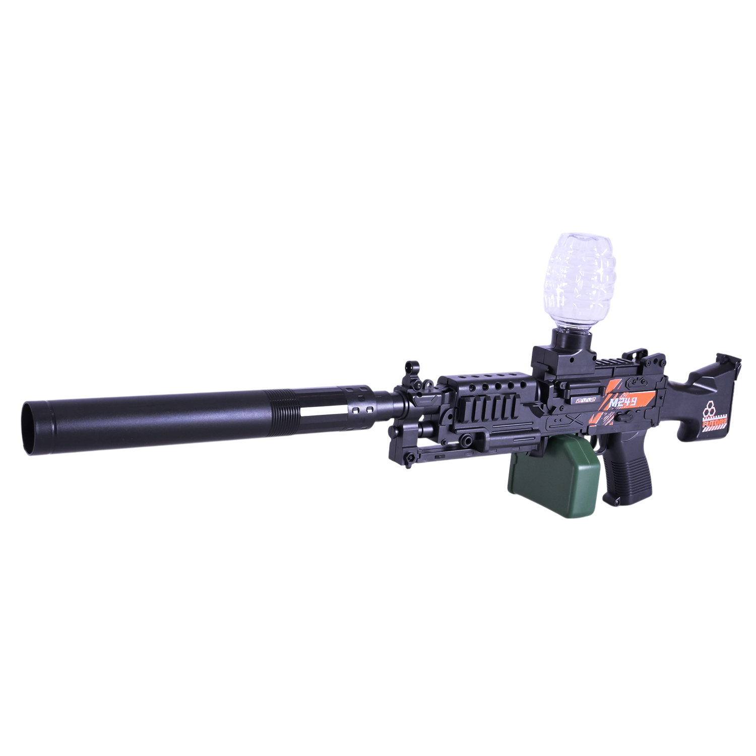 Цей автомат вирізняється унікальним дизайном, що нагадує реальний М249, популярну кулеметну модель. Завдяки деталям, таким як сошка для стабілізації, він виглядає як справжня бойова зброя, але при цьому абсолютно безпечний для гри. Лінії корпусу, виразні контури та механізм, що нагадує реальну техніку, роблять іграшку не тільки інтерактивною, але й привабливою для дітей, котрі люблять військову тематику та деталі військової техніки.