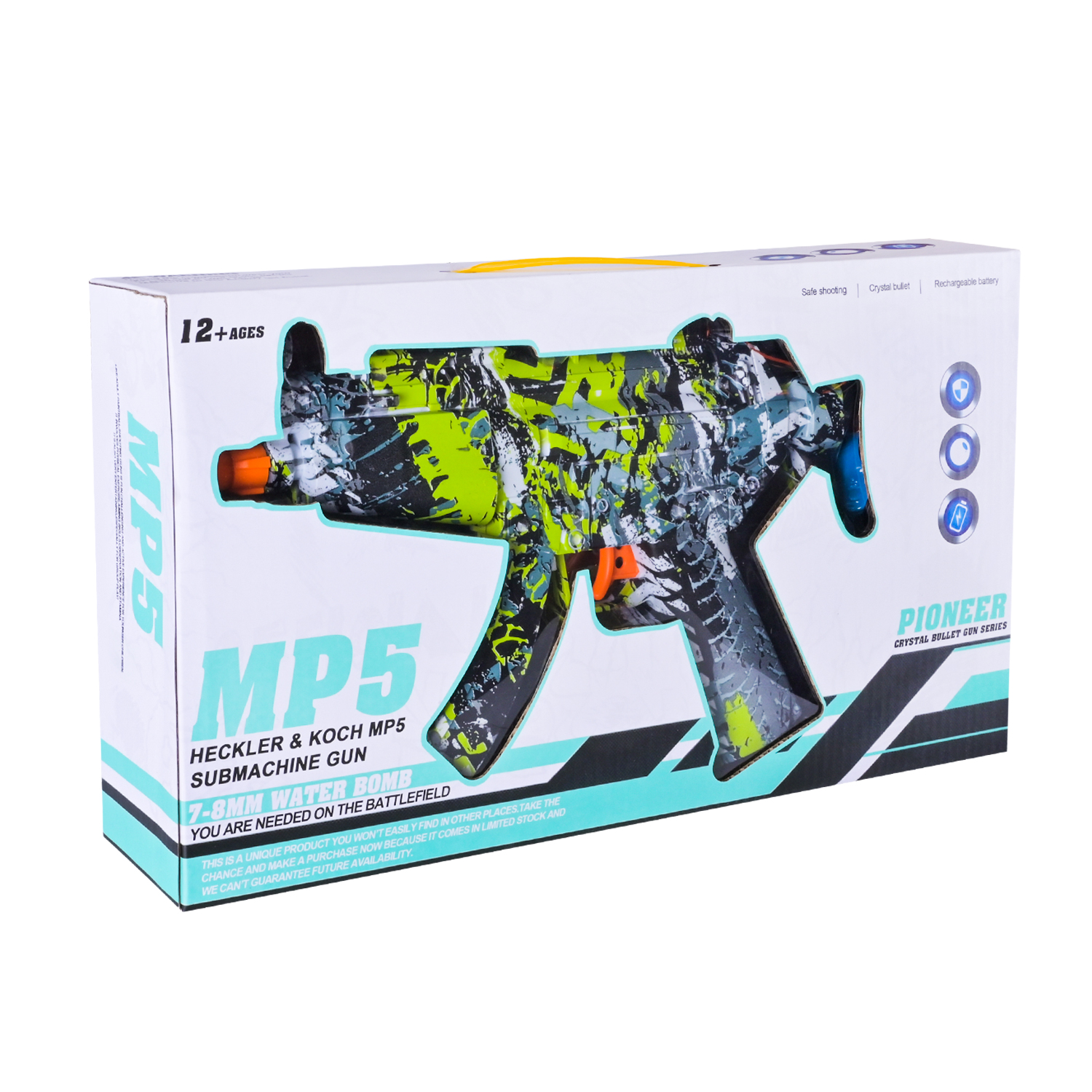 Автомат типу MP5, який заряджає адреналіном із першого пострілу! Ця зброя стріляє гелевими кульками та деально підходить для активних ігор на свіжому повітрі з друзями! Гра із цим автоматом приносить задоволення та драйв, бо створена для динамічних баталій.