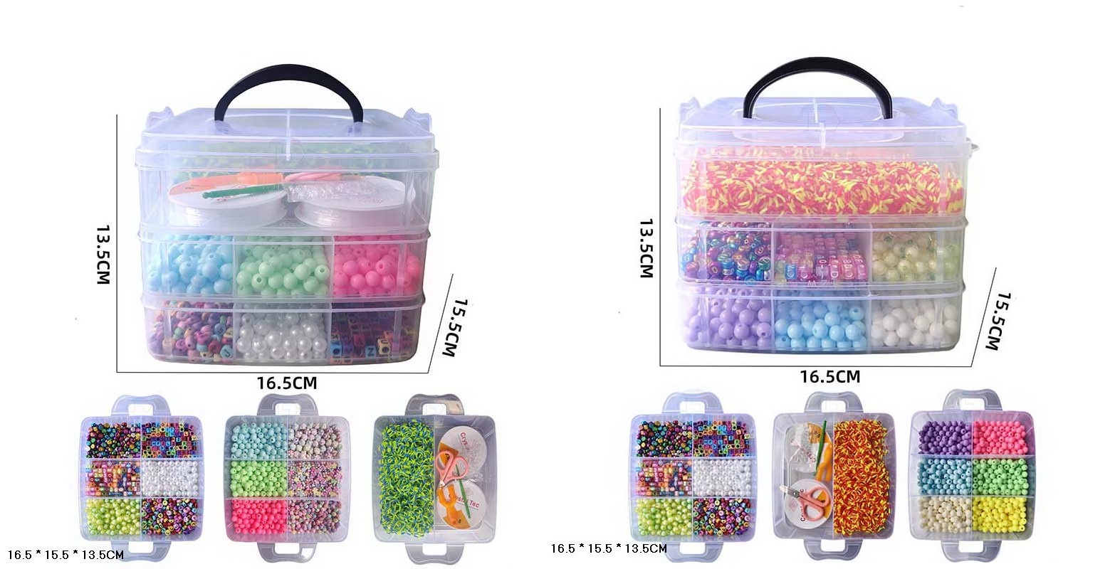 Бісер арт. 330-146/147 (48шт) 2 види мікс, триповерховий бокс, бісер, намистини, гумка, бокс 13,5*16,5*15,5см