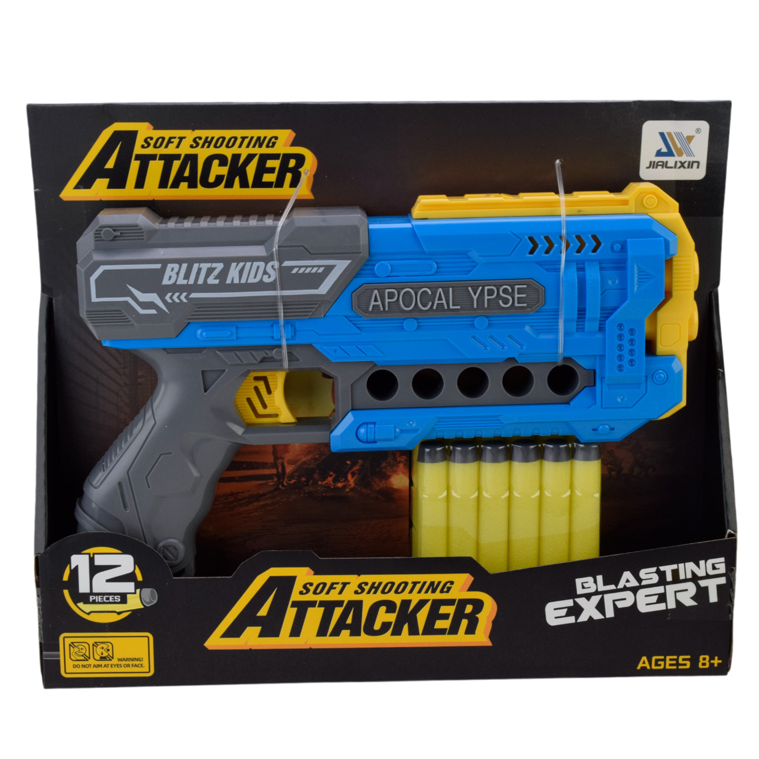 Бластер арт. JLX8615 (72шт/2) стріляє поролоновими знарядами, 12знарядів планш. 28,8-4,8*24см