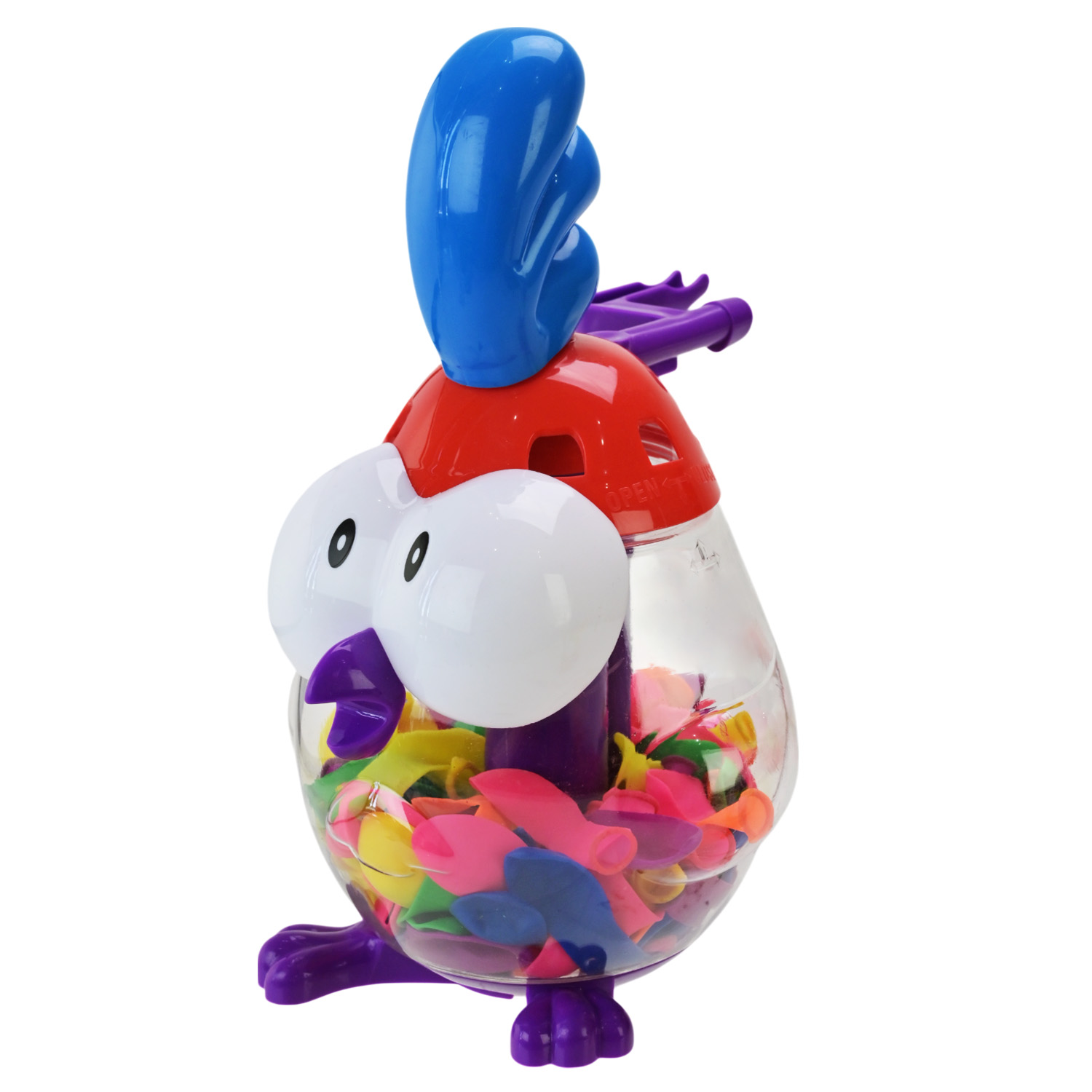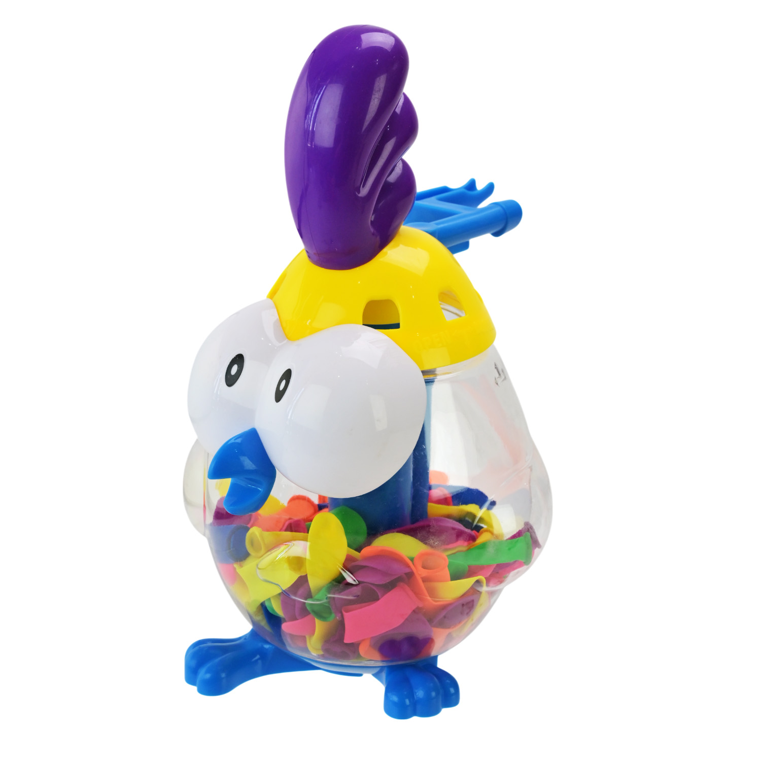 Цей набір подарує багато веселих моментів для ігор на свіжому повітрі! Водяні кульки легко наповнюються водою за допомогою унікального насоса, створеного у вигляді голови курочки, а в кінці процес нагадує маленьке курча.
