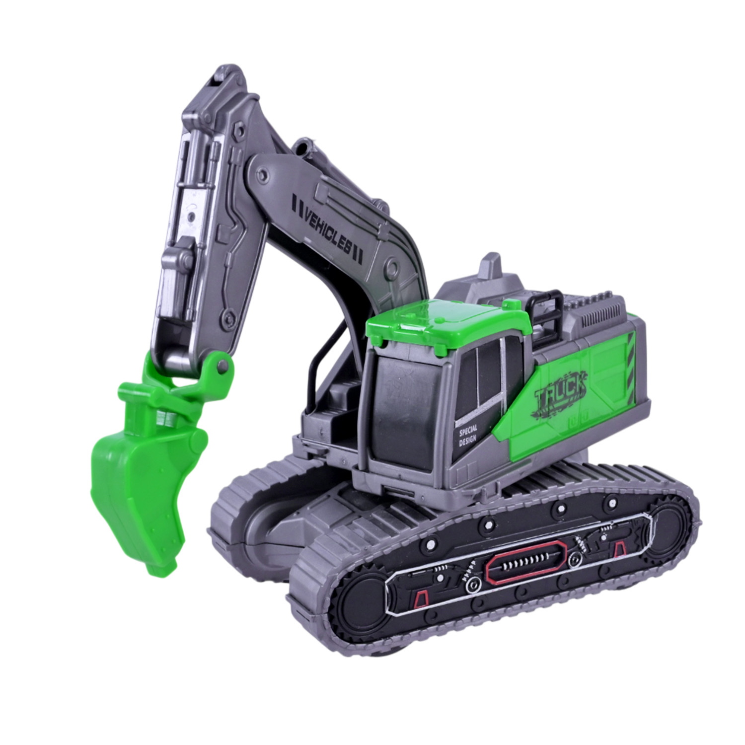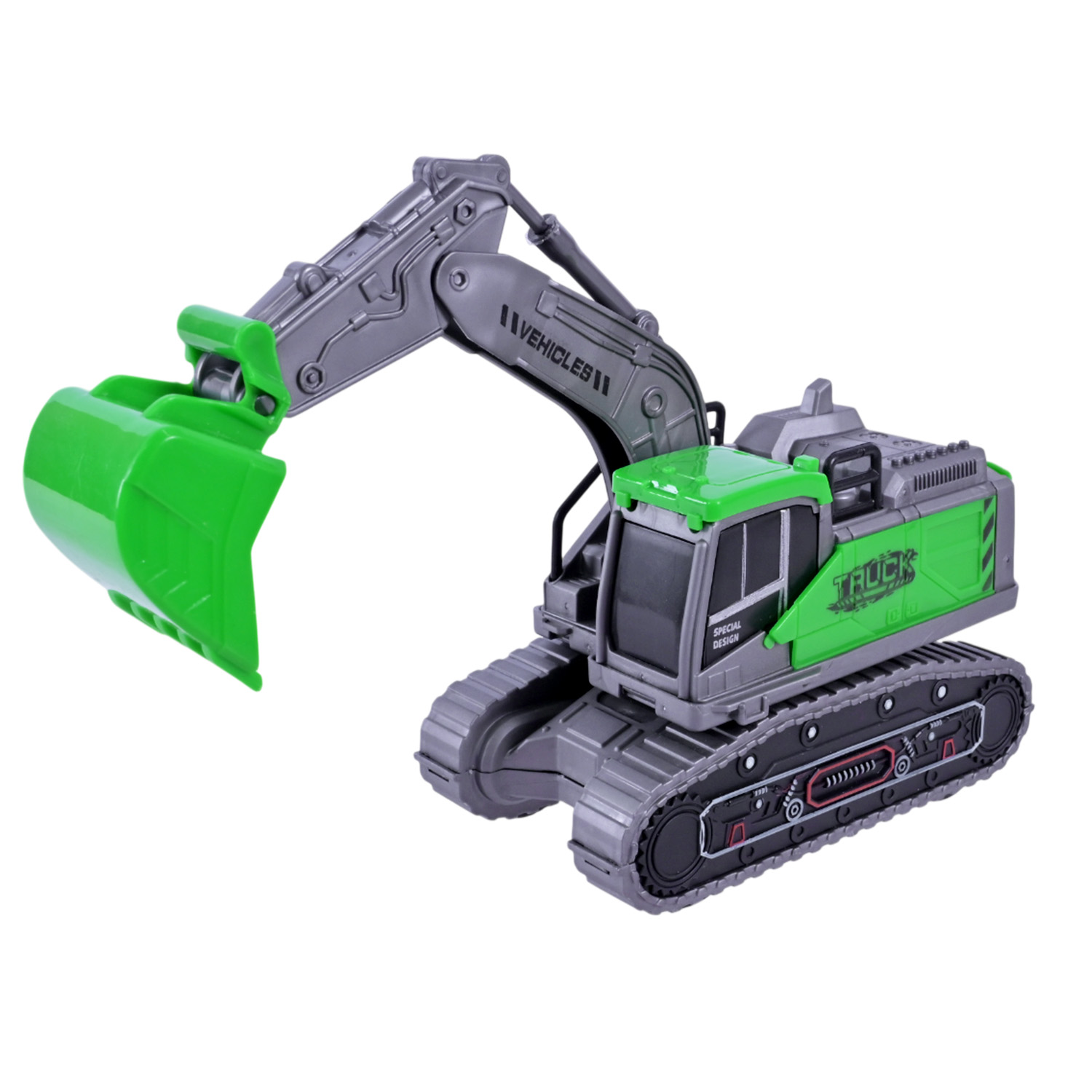 • Рухомий ковш і колеса: ковш екскаватора легко рухається, а завдяки колесам модель може пересуватися по поверхні, імітуючи реальні будівельні роботи.