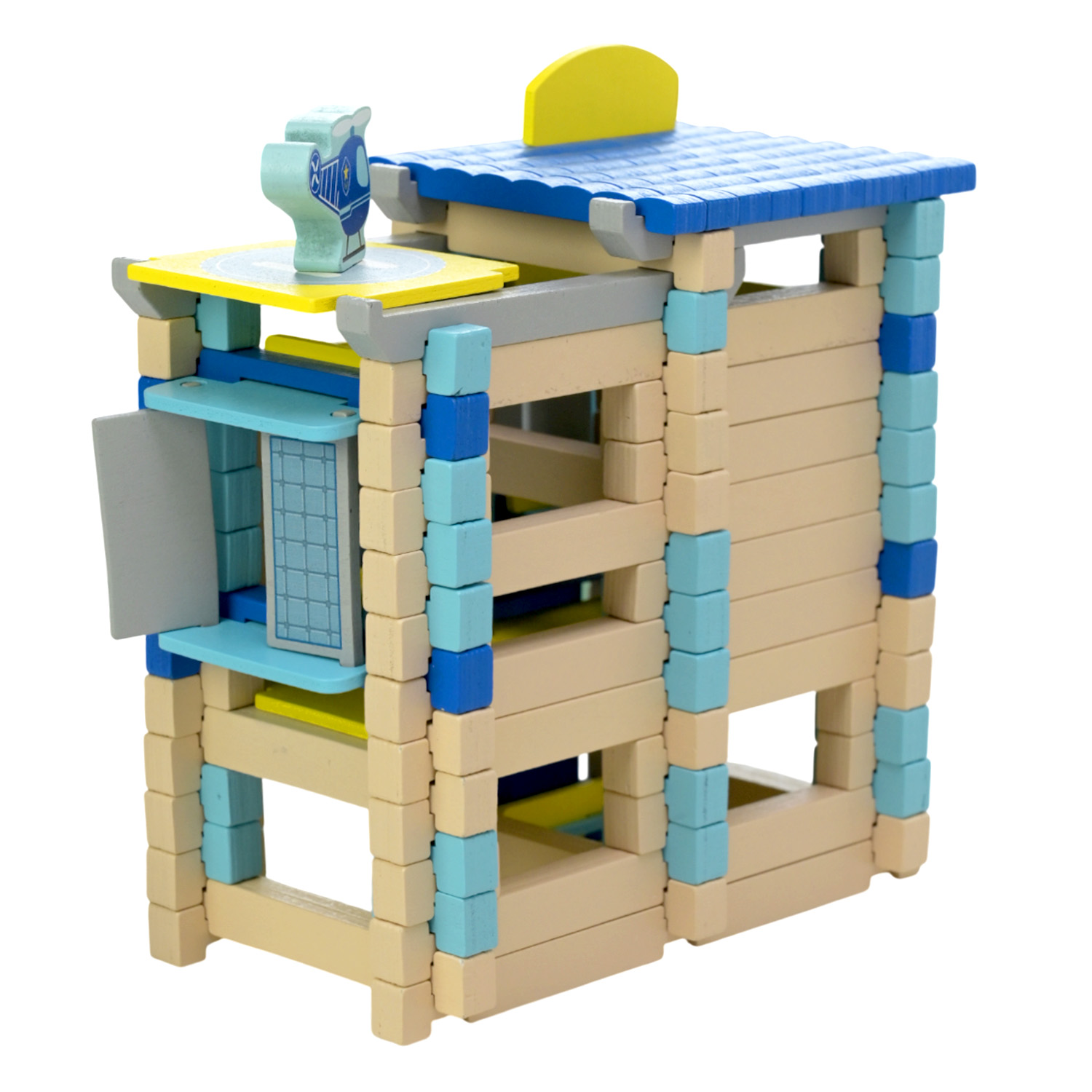 Яскравий конструктор із дерев’яних блоків — для маленьких мрійників, з яких можна зібрати власний поліцейський відділок. Він буде чудовим варіантом для першого знайомства з будівництвом, сюжетними іграми та ідеально підійде навіть для найменших діточок.