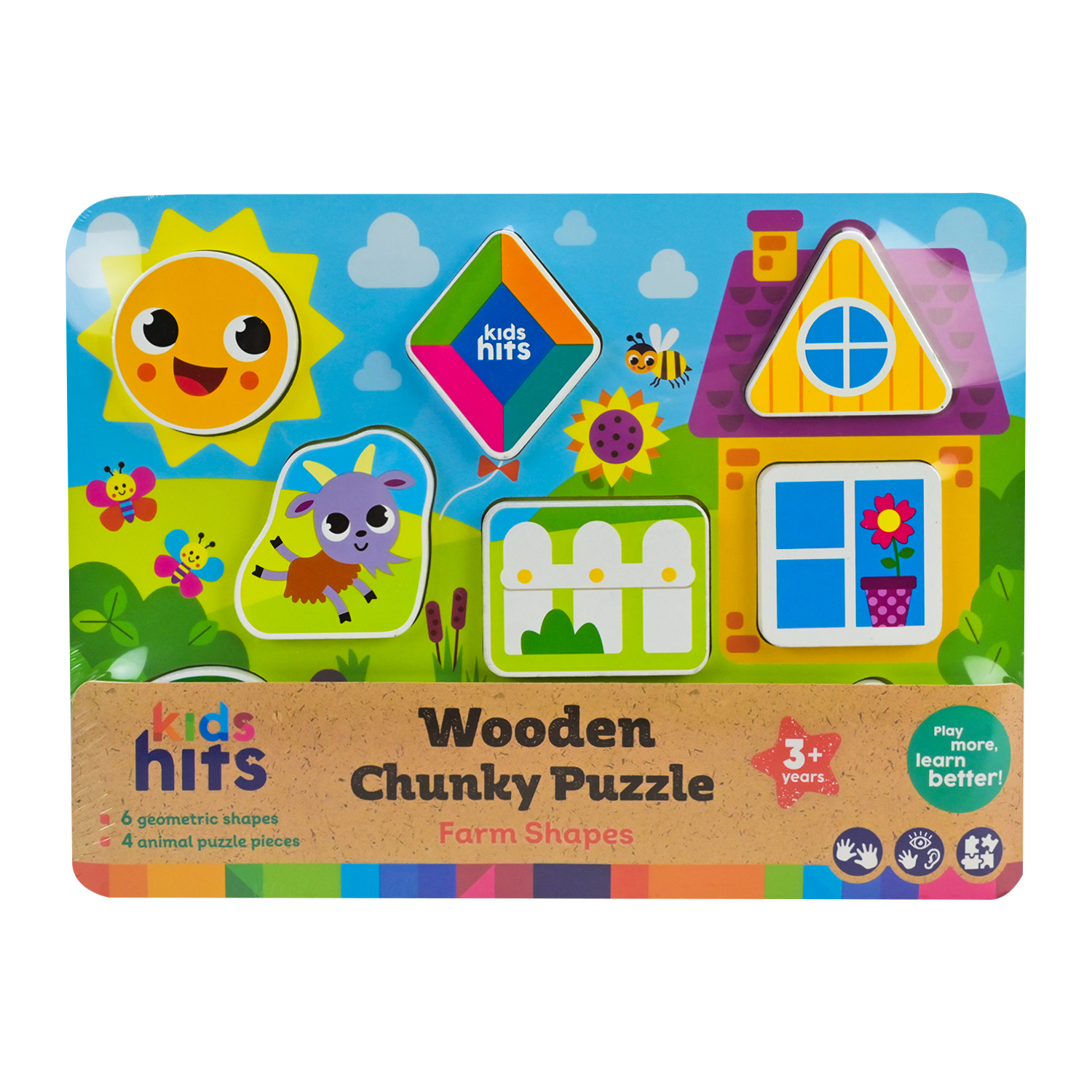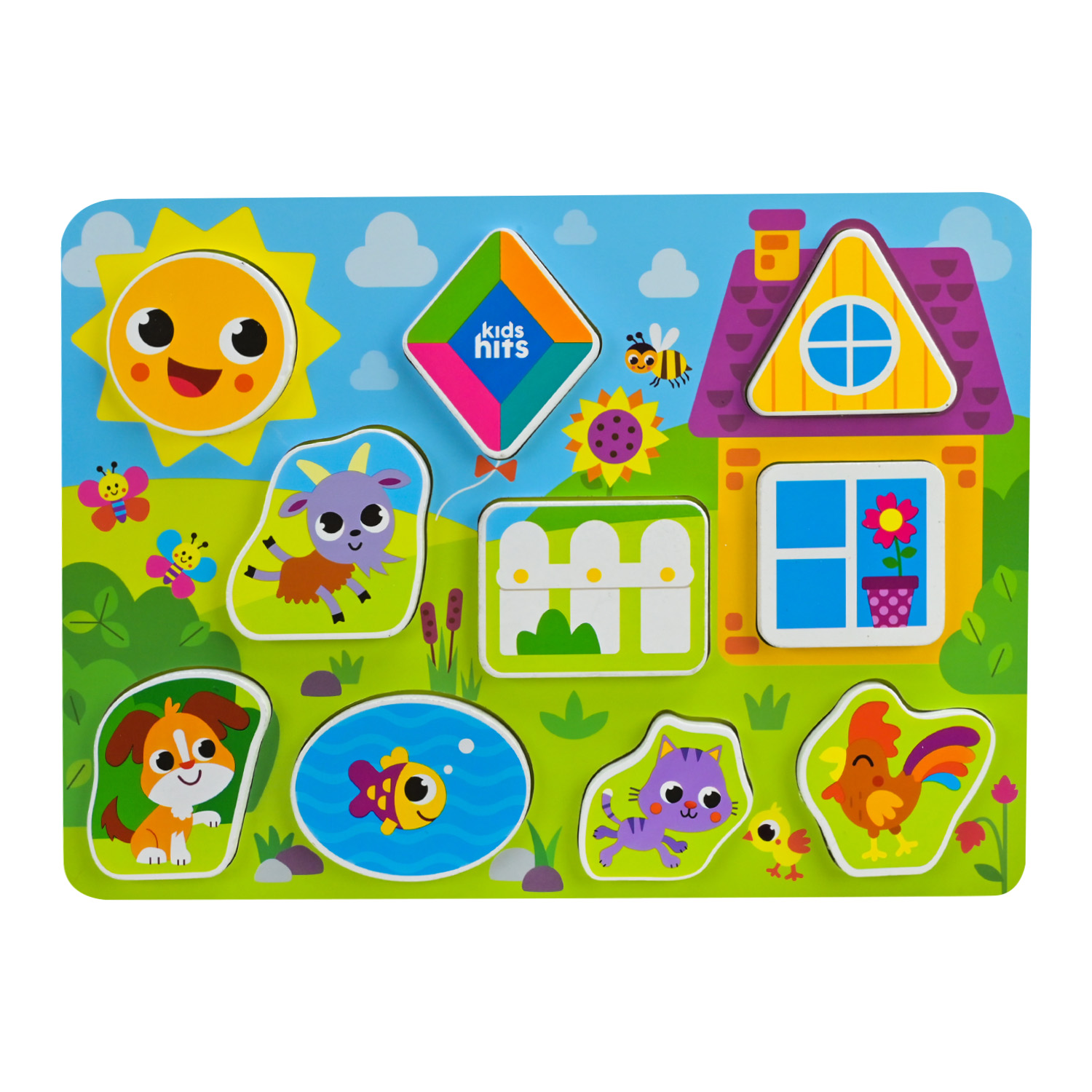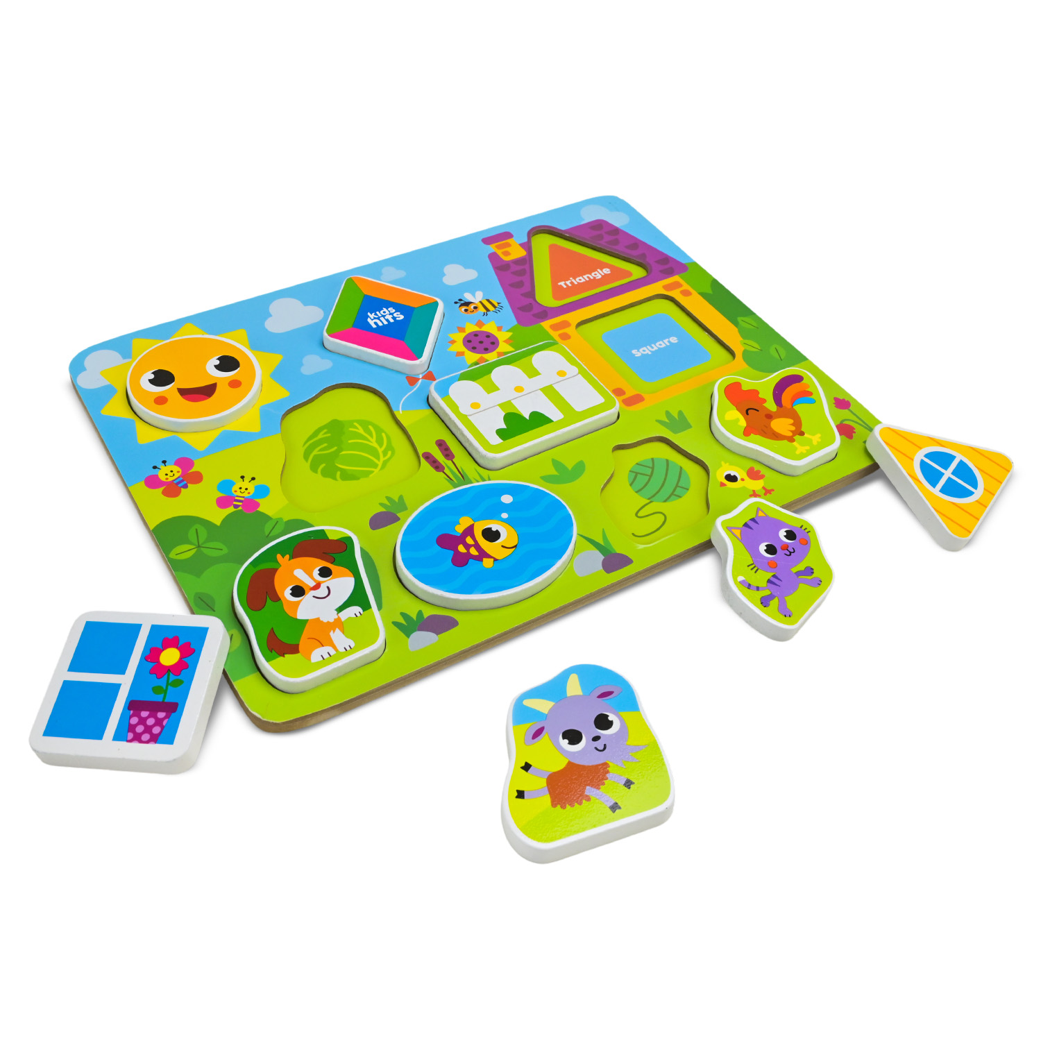 Дерев’яна іграшка Kids Hits — пізнавальна дошка з фігурками, що поєднує роботу з формами та знайомство з тваринами у наочному і зрозумілому форматі. Продумане розташування елементів створює впорядкований простір для гри та сприйняття інформації.
