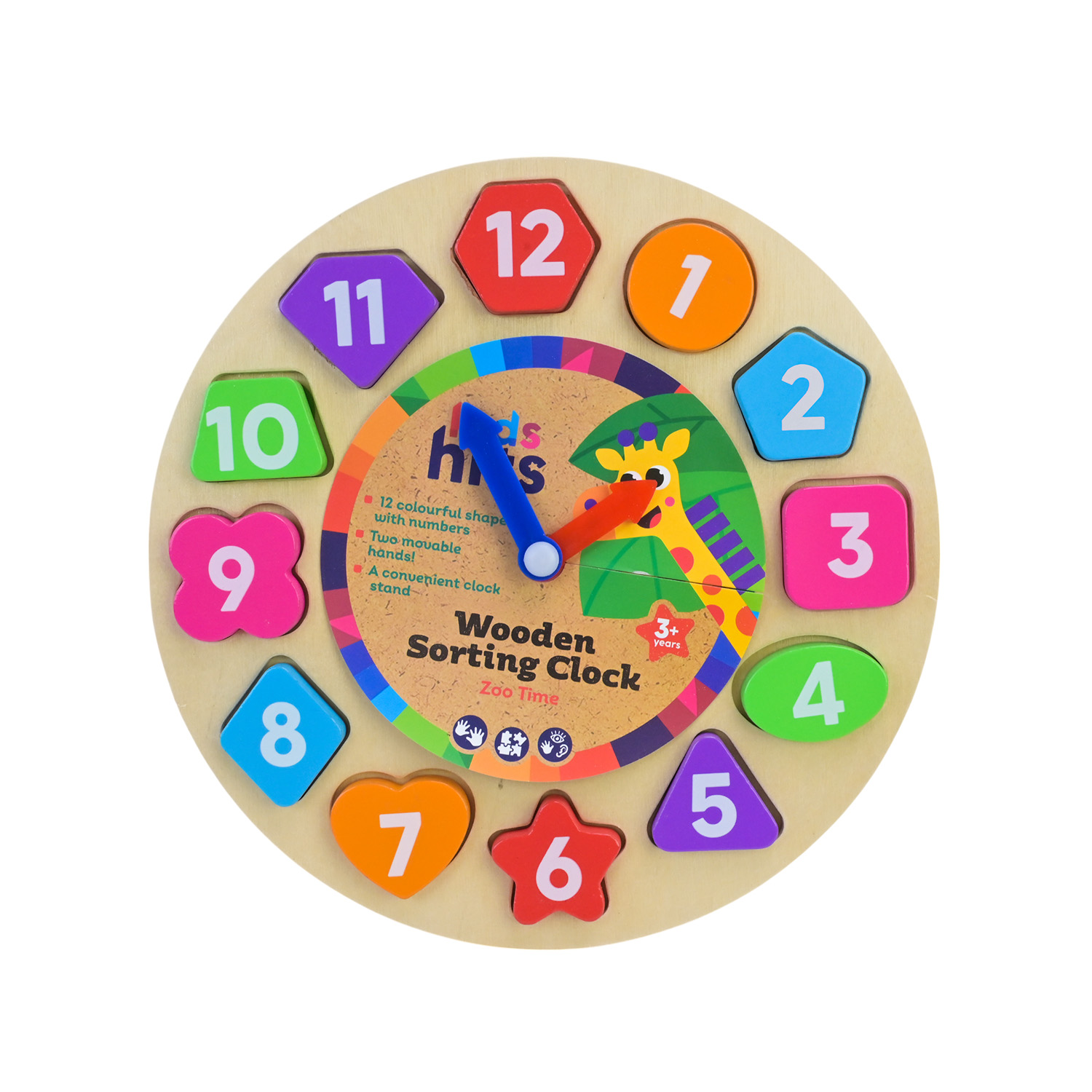 • оригінальний дизайн сортеру у вигляді годинника з цифрами, із зручною підставкою, який виготовлений у яскравих кольорах та з персонажами улюбленого мультфільму зроблять гру цікавою та захопливою;