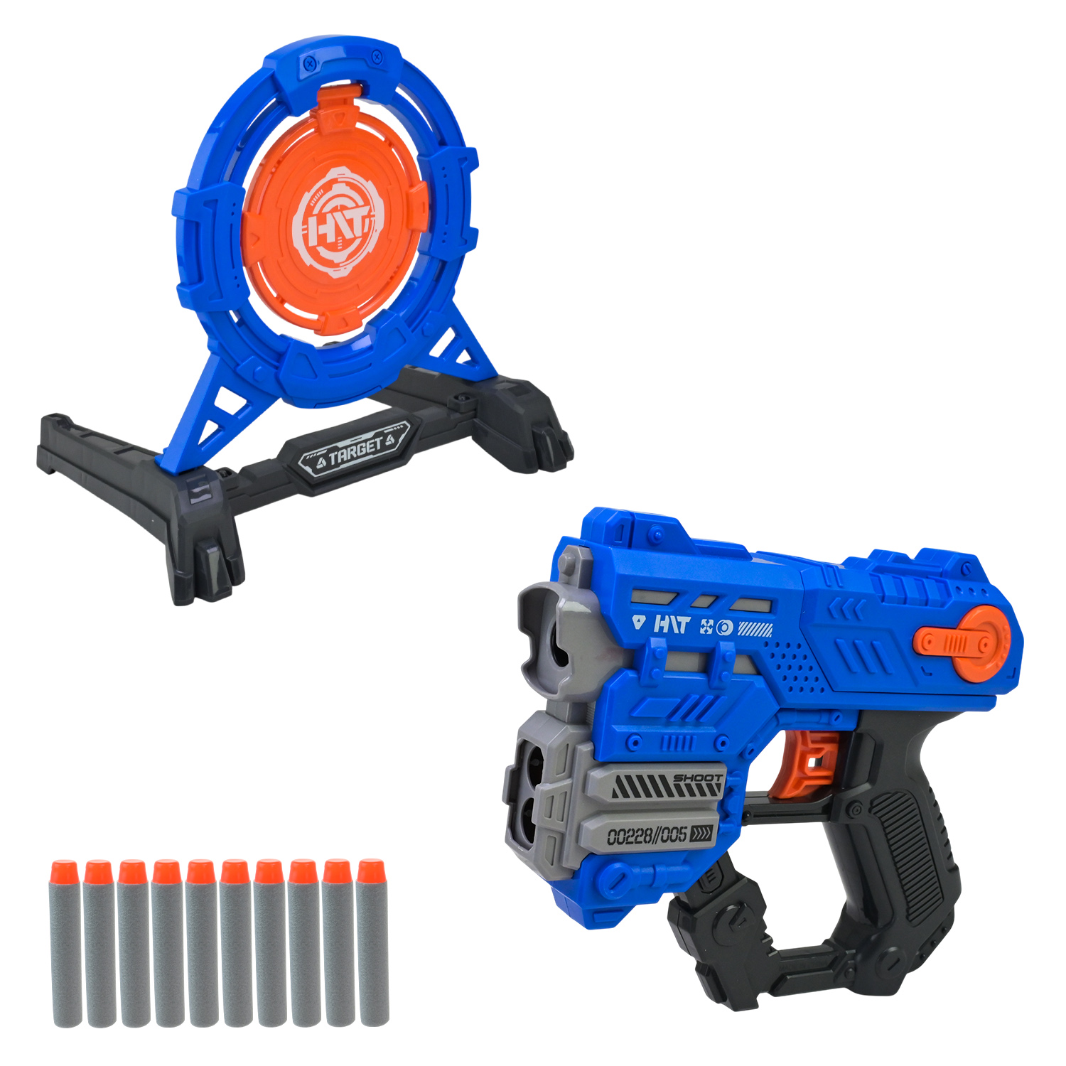 Готовий до захопливих стрілецьких тренувань? Пістолет з рухомою мішенню подарує неймовірні емоції та відчуття справжнього змагання! Просто заряджай поролонові кульки — і вперед, на влучність!
