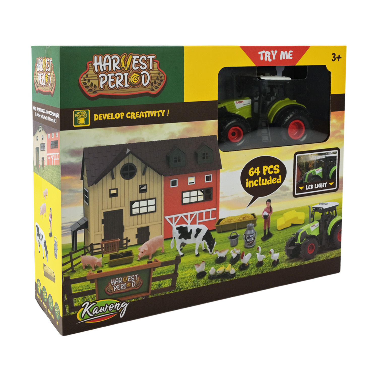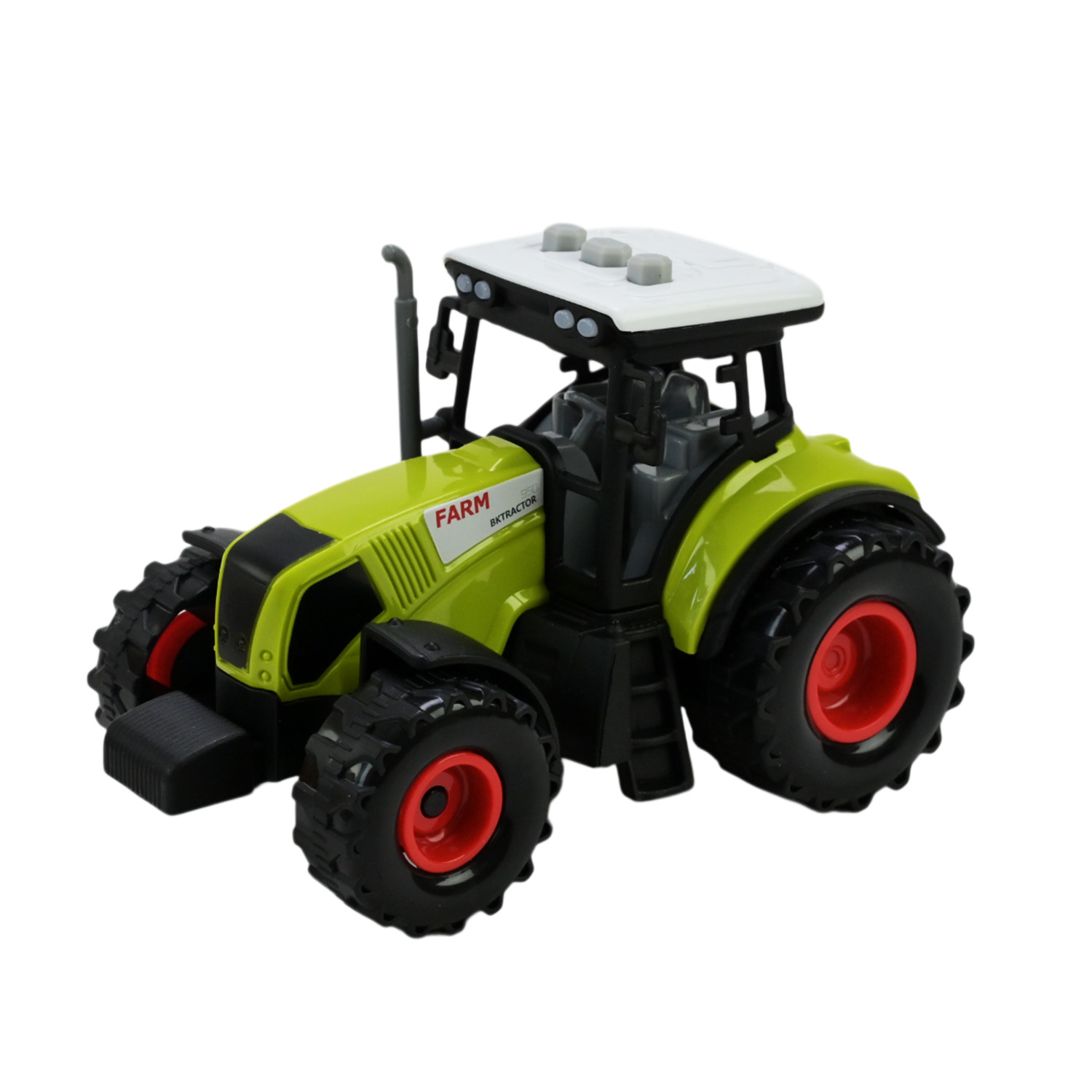 • У трактора світяться фари та у нього на даху є 3 інтерактивні кнопки, що відтворюють різні звукові ефекти.