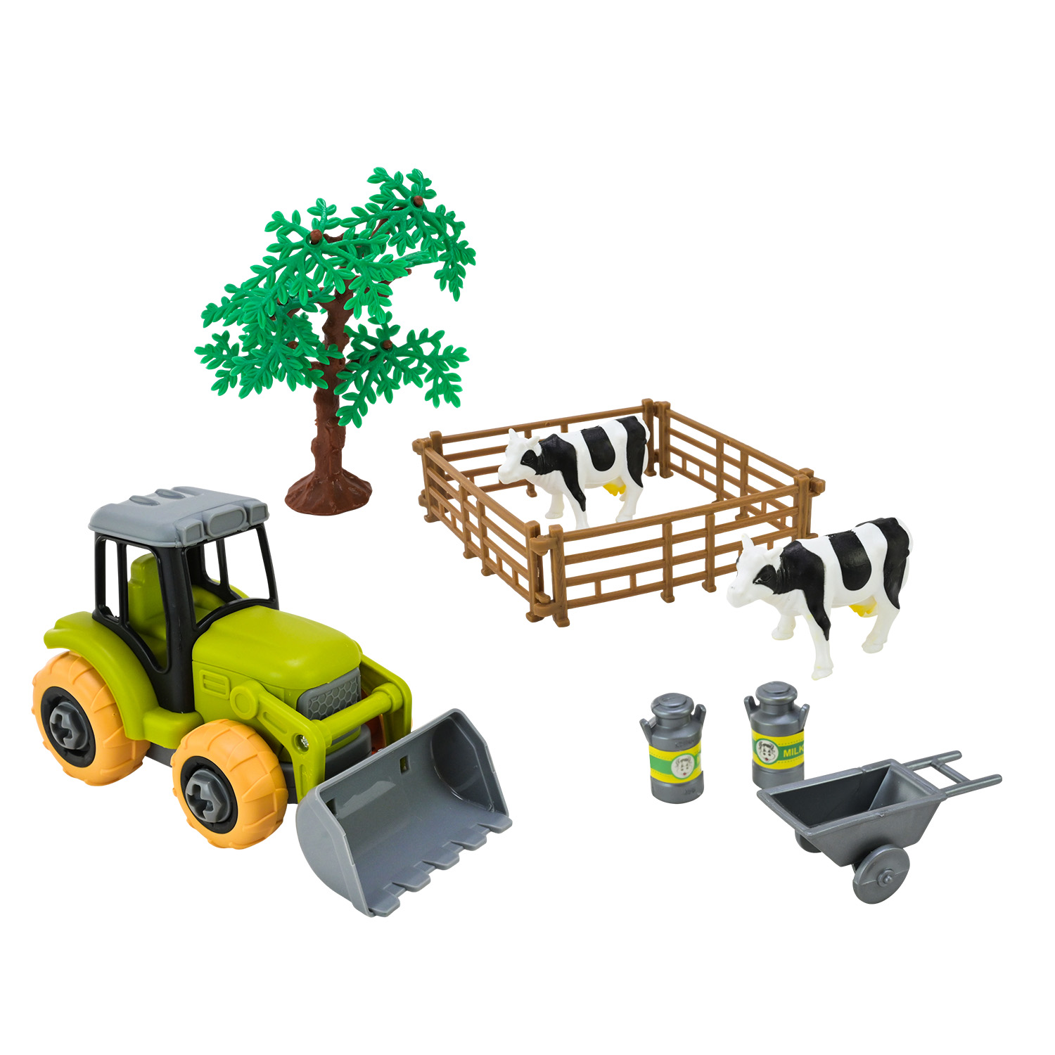 • Декоративні елементи: паркан, фігурки тварин (2 шт), візок, дерево, бідончики (2 шт);