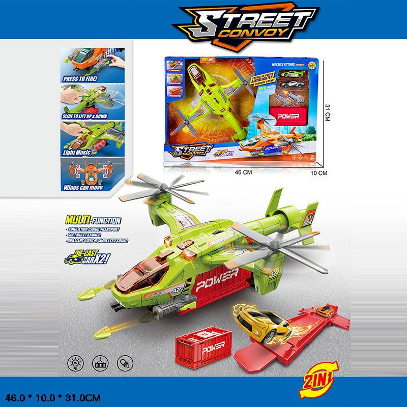 Крутезний ігровий набір, в якому є все для веселого проводження часу та вигадування сюжетних ігор! Вертоліт, машинки та контейнер, який може трансформуватись у трек або перетворить дитячу кімнату у захоплюючі пригоди із переміщенням контейнеру.