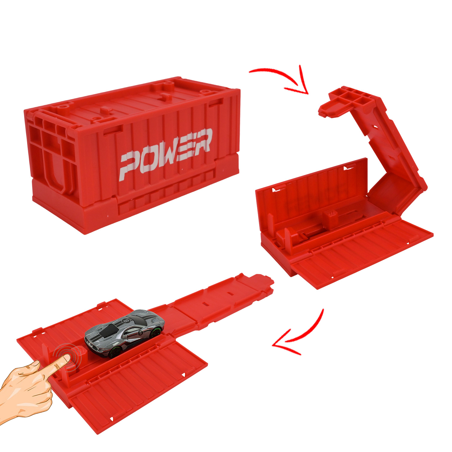 • Контейнер-трансформер, що відчиняється і перетворюється на трек. Спеціальний механізм вертольота дає змогу піднімати та опускати контейнер під час гри.