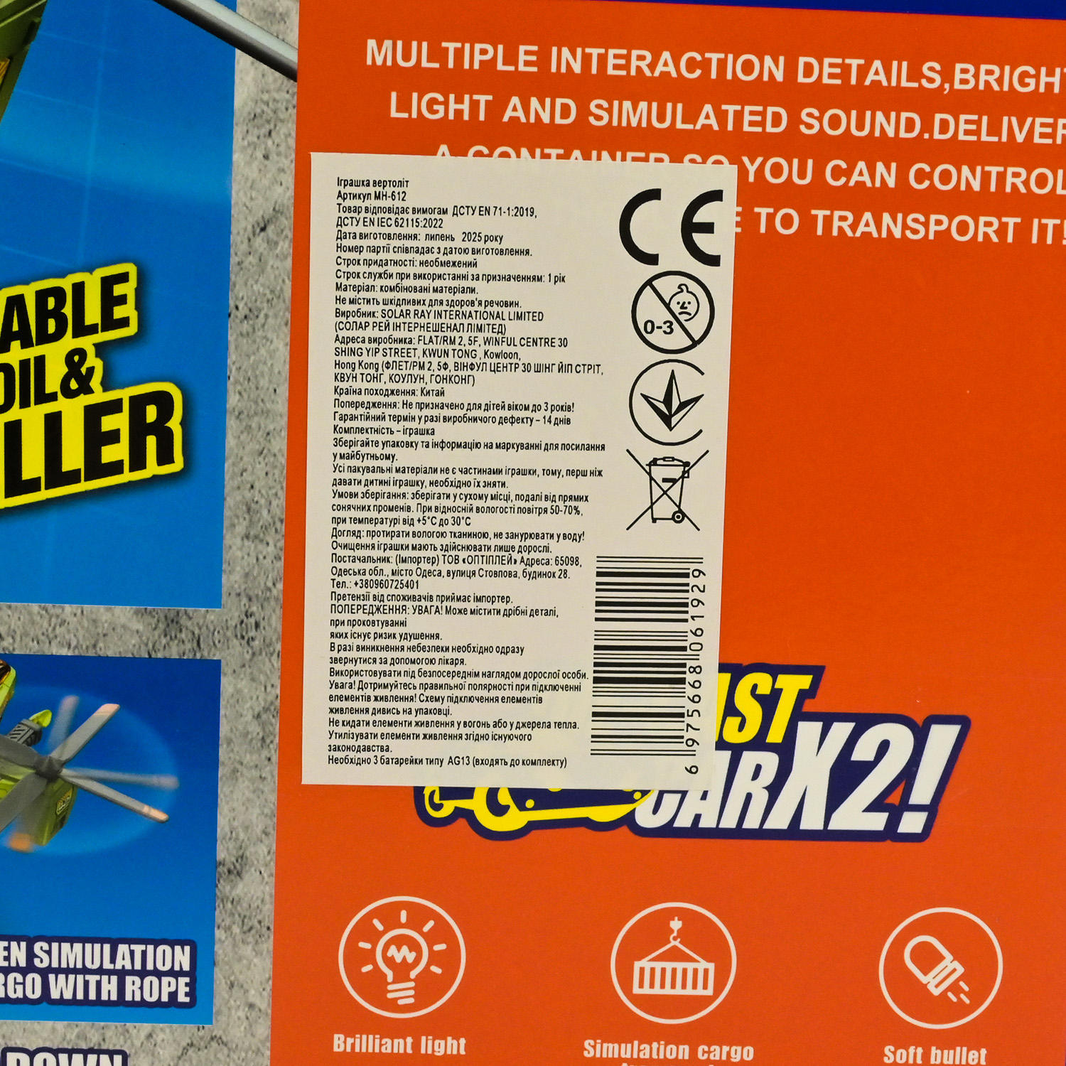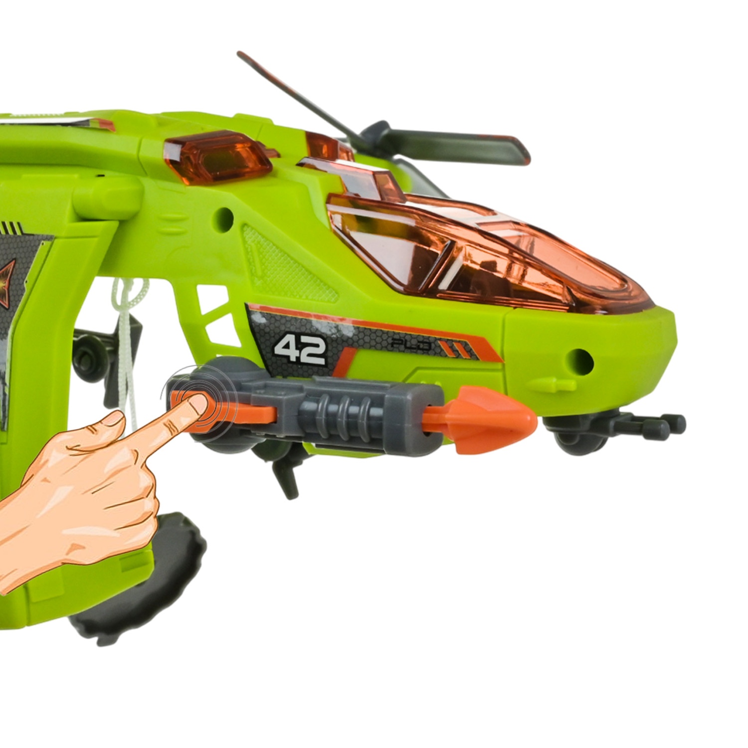 • Вертоліт оснащений реалістичними звуковими ефектами, які створюють цікаву атмосферу гри, потрібно лише натиснути на кнопку на самому вертольоті.