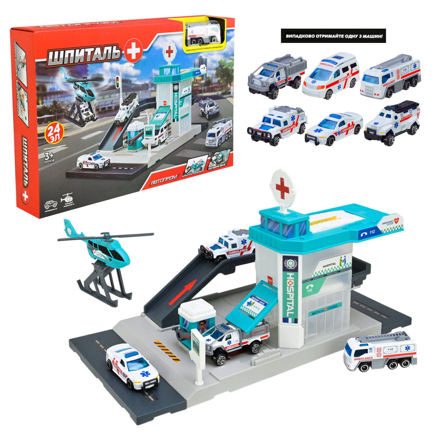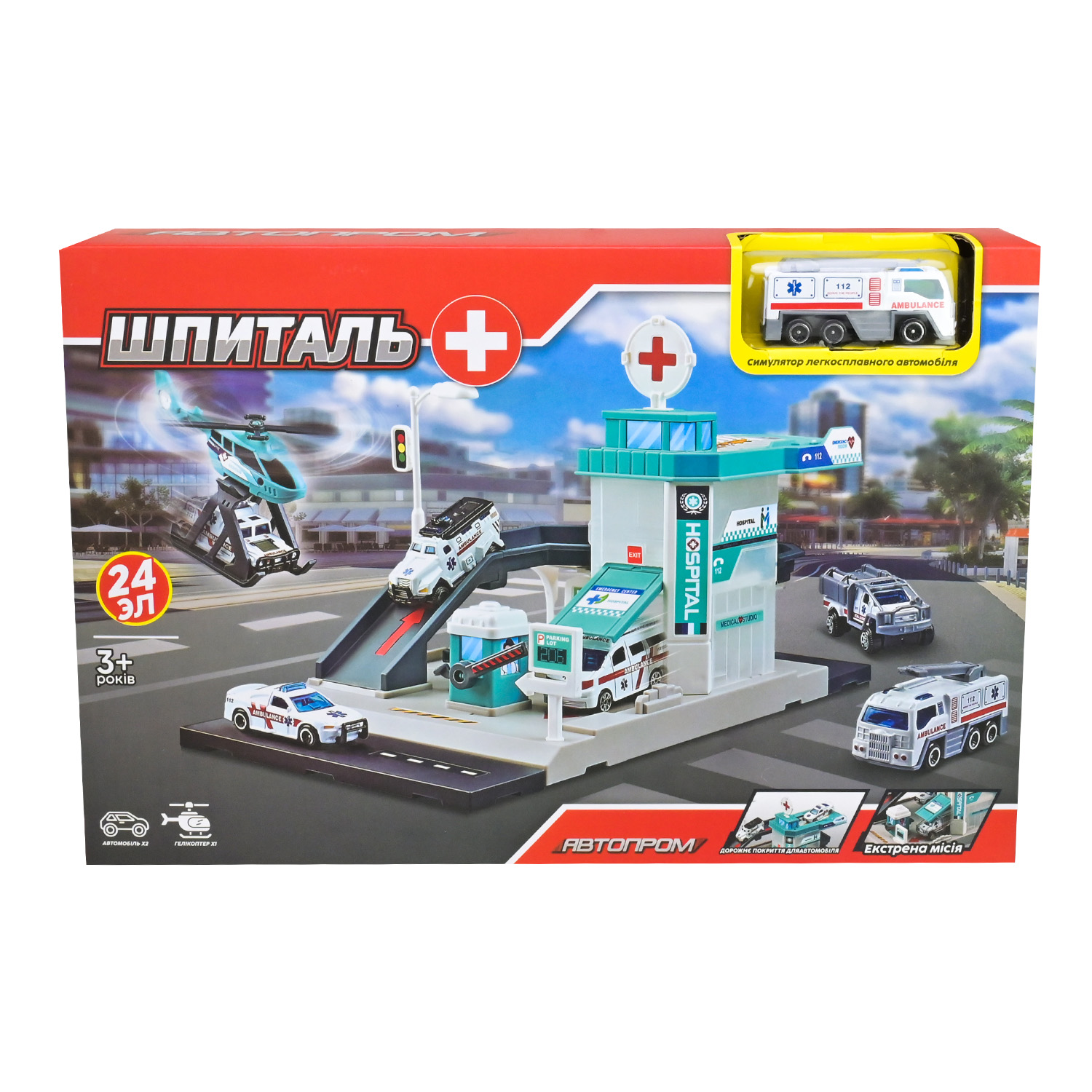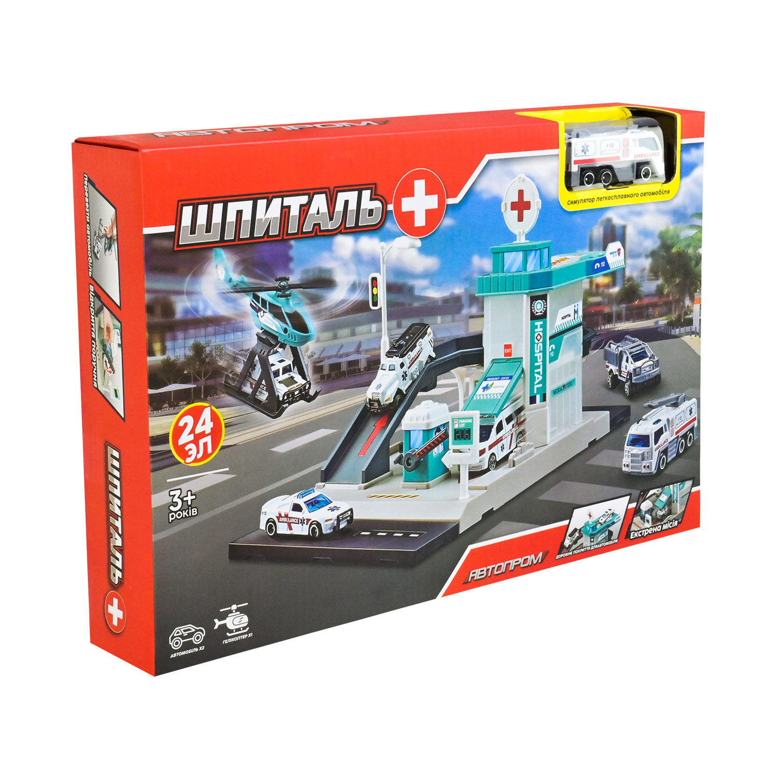 Ігровий набір АВТОПРОМ арт. PS005-5 (48шт/2) ШПИТАЛЬ,короб. 36*24*6,5см