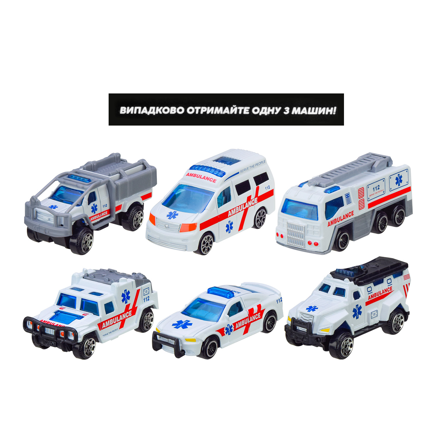 •Одна машинка (випадкова, з 6 доступних видів – збирайте всю колекцію!).