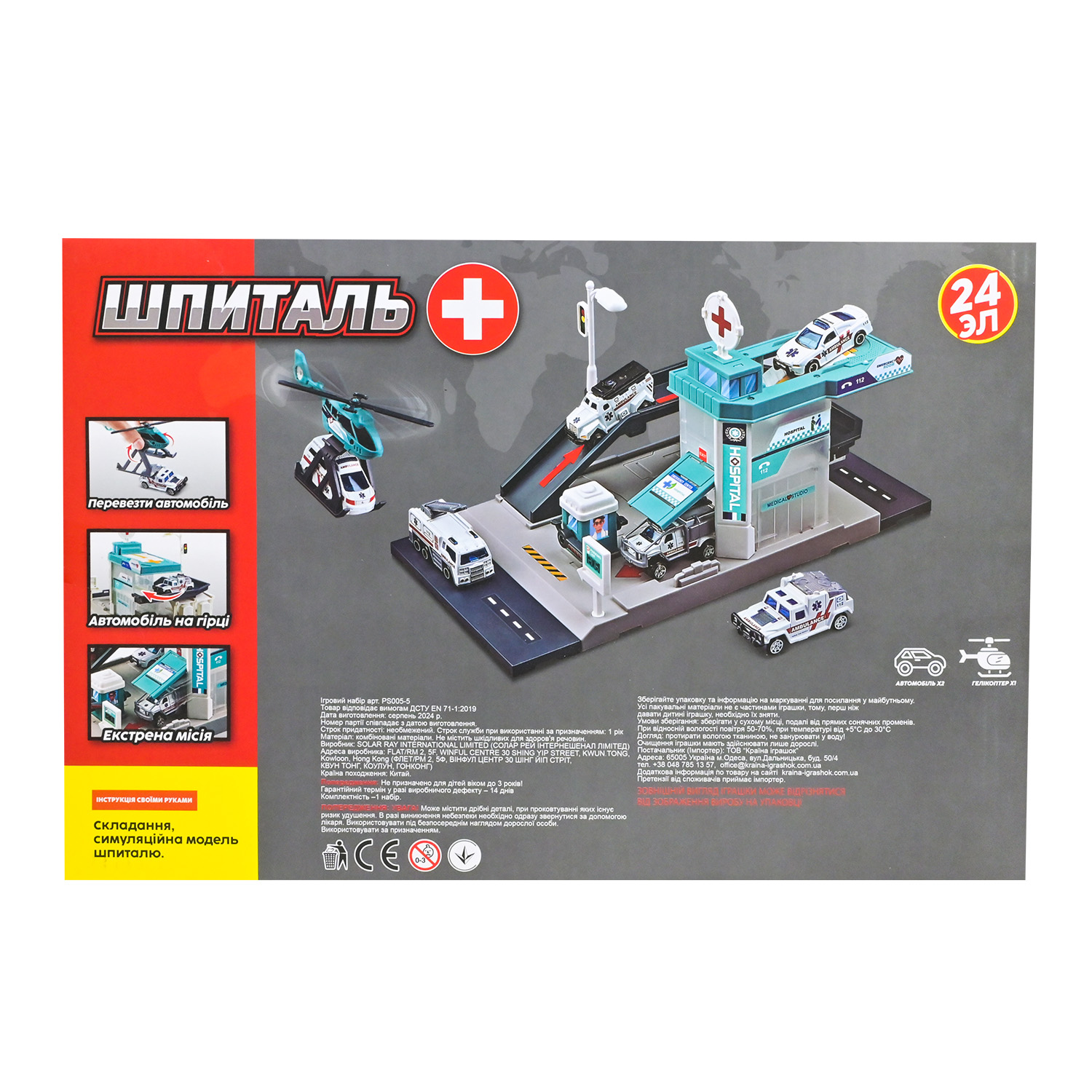 •Ігровий вертоліт оснащений можливістю переміщати машинку, додаючи динаміки та реалістичності сюжету.
