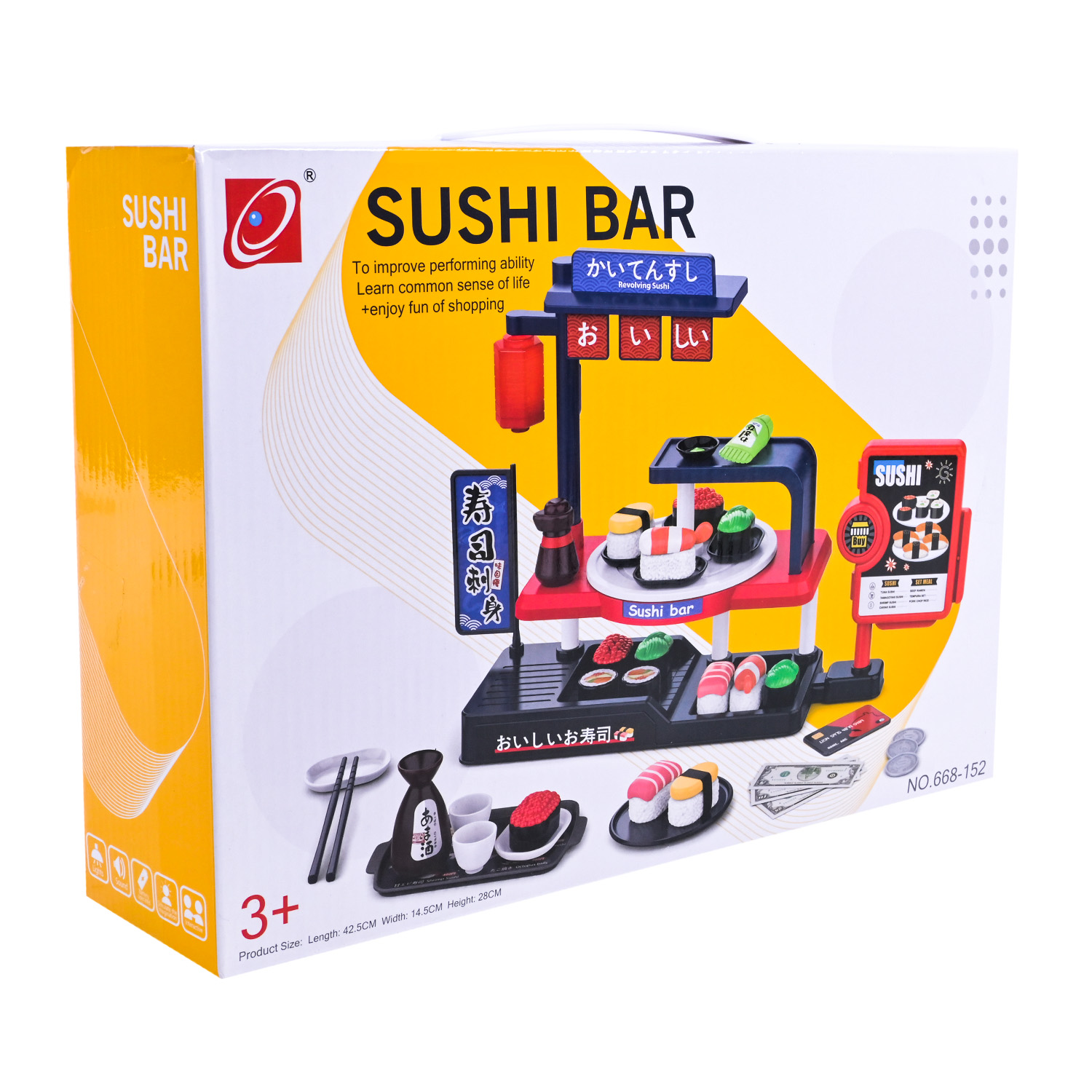 Цей ігровий набір – справжня знахідка для маленьких шанувальників кулінарних ігор! Кафе дозволяє дитині відчути себе шеф-кухарем або продавцем суші-бару.