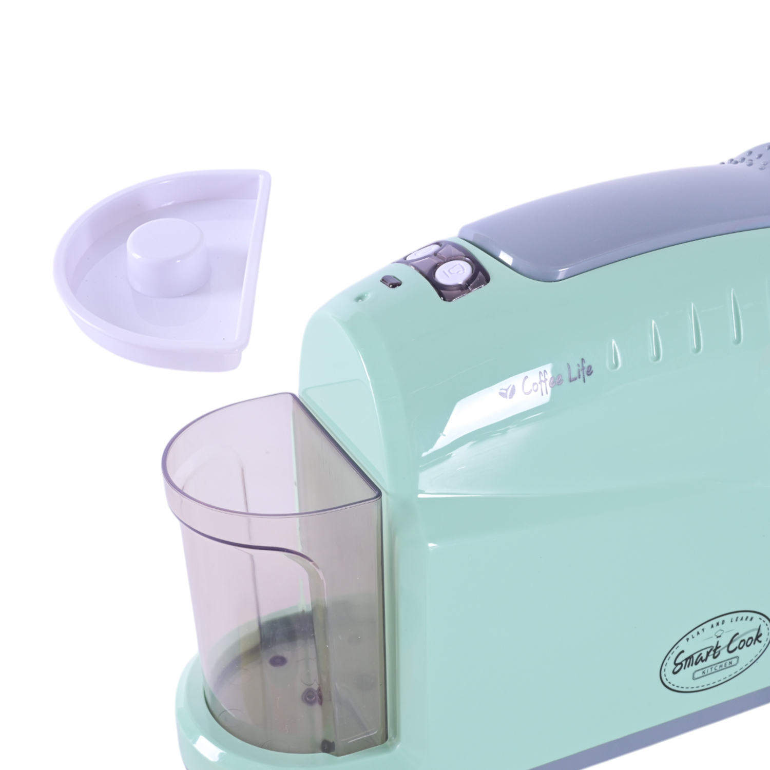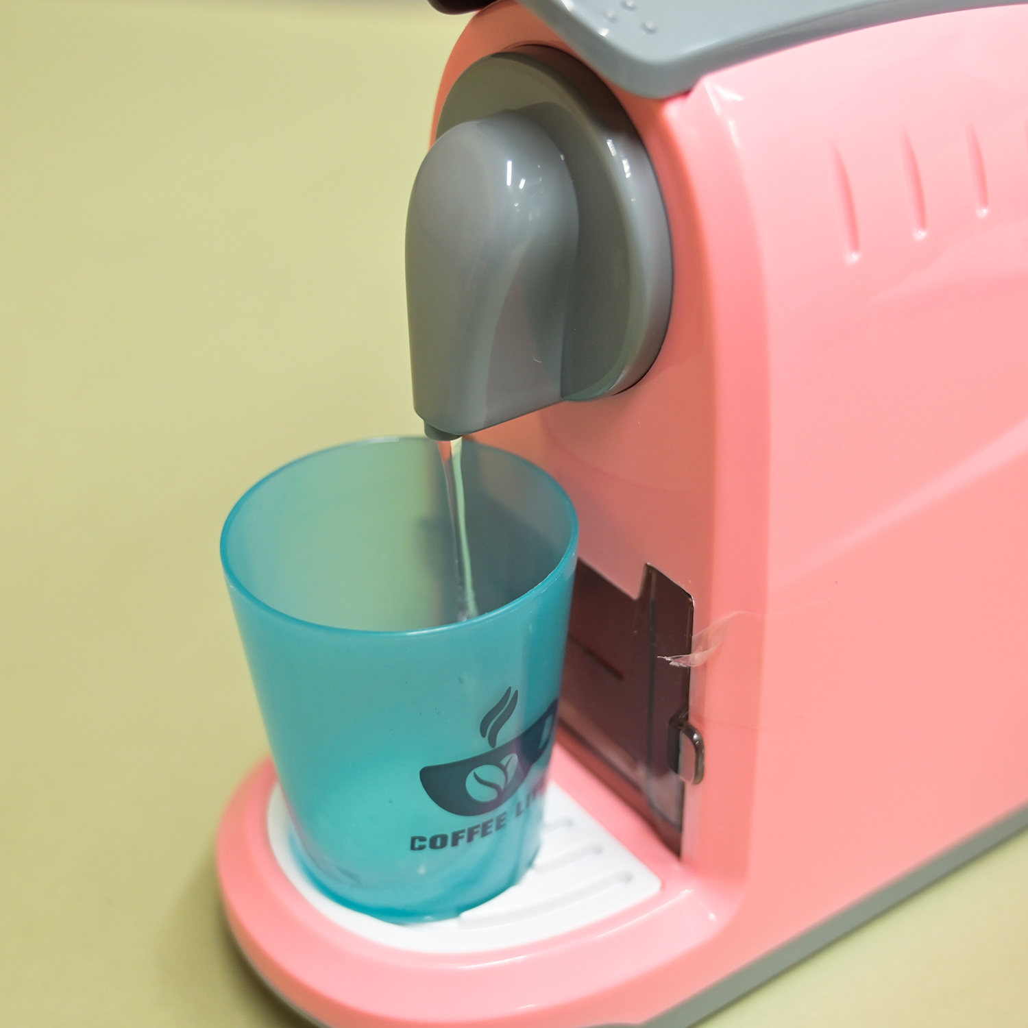 – функціональна кавоварка наливає воду, має підсвітку, імітує звуки приготування кави та наливання у чашку.