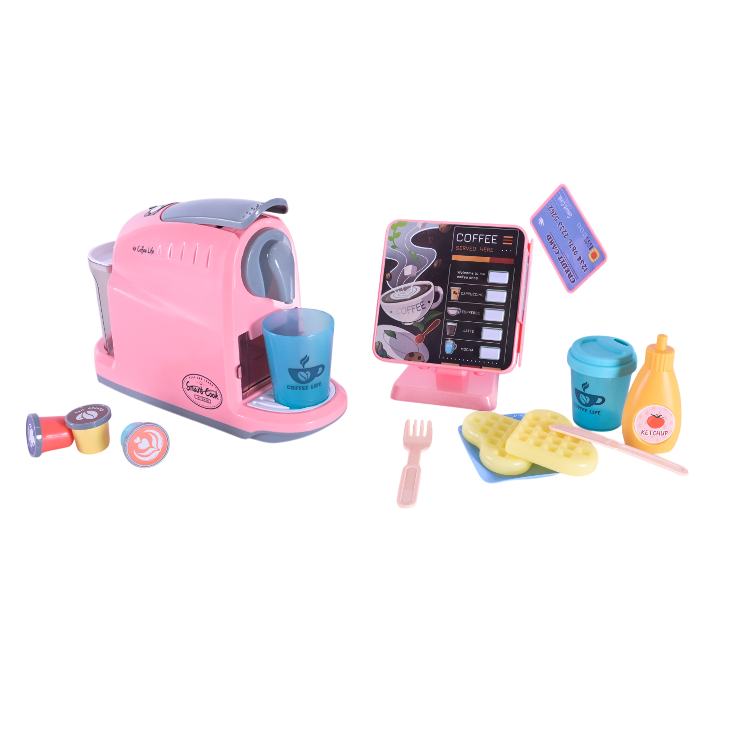 Іграшка кафе набір — це інтерактивний набір для юних любителів гри у кафе, який включає кавоварку, касовий апарат та інші аксесуари, створюючи реалістичну атмосферу.