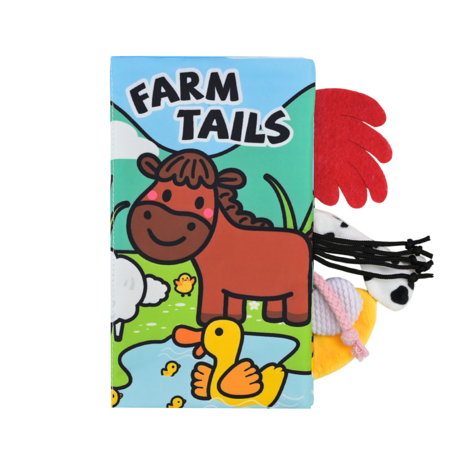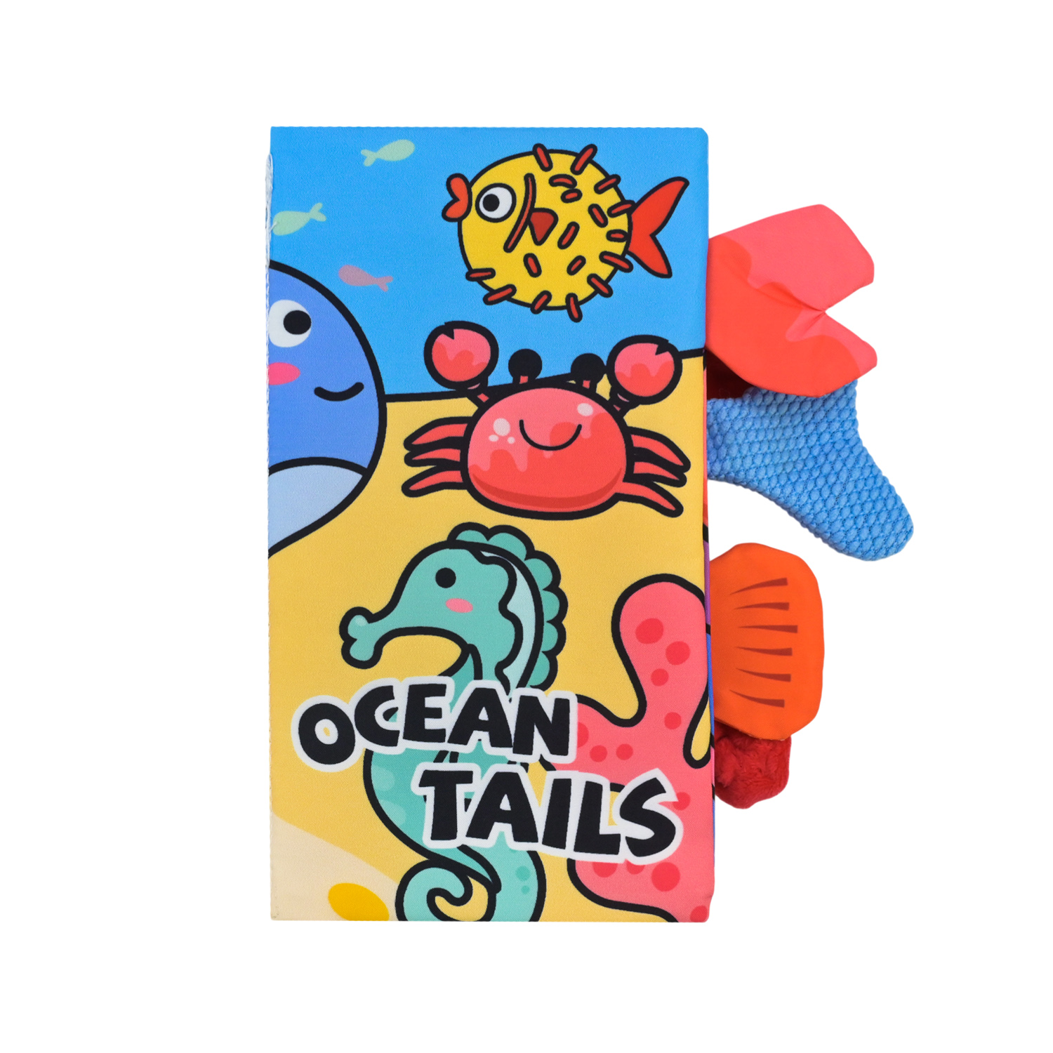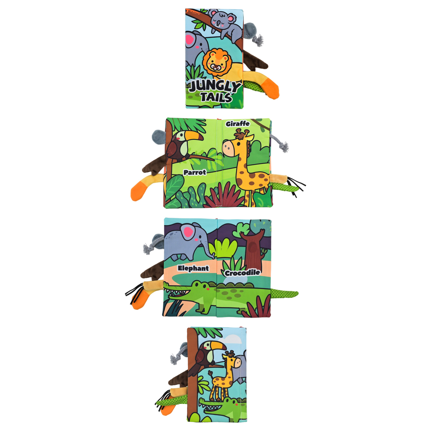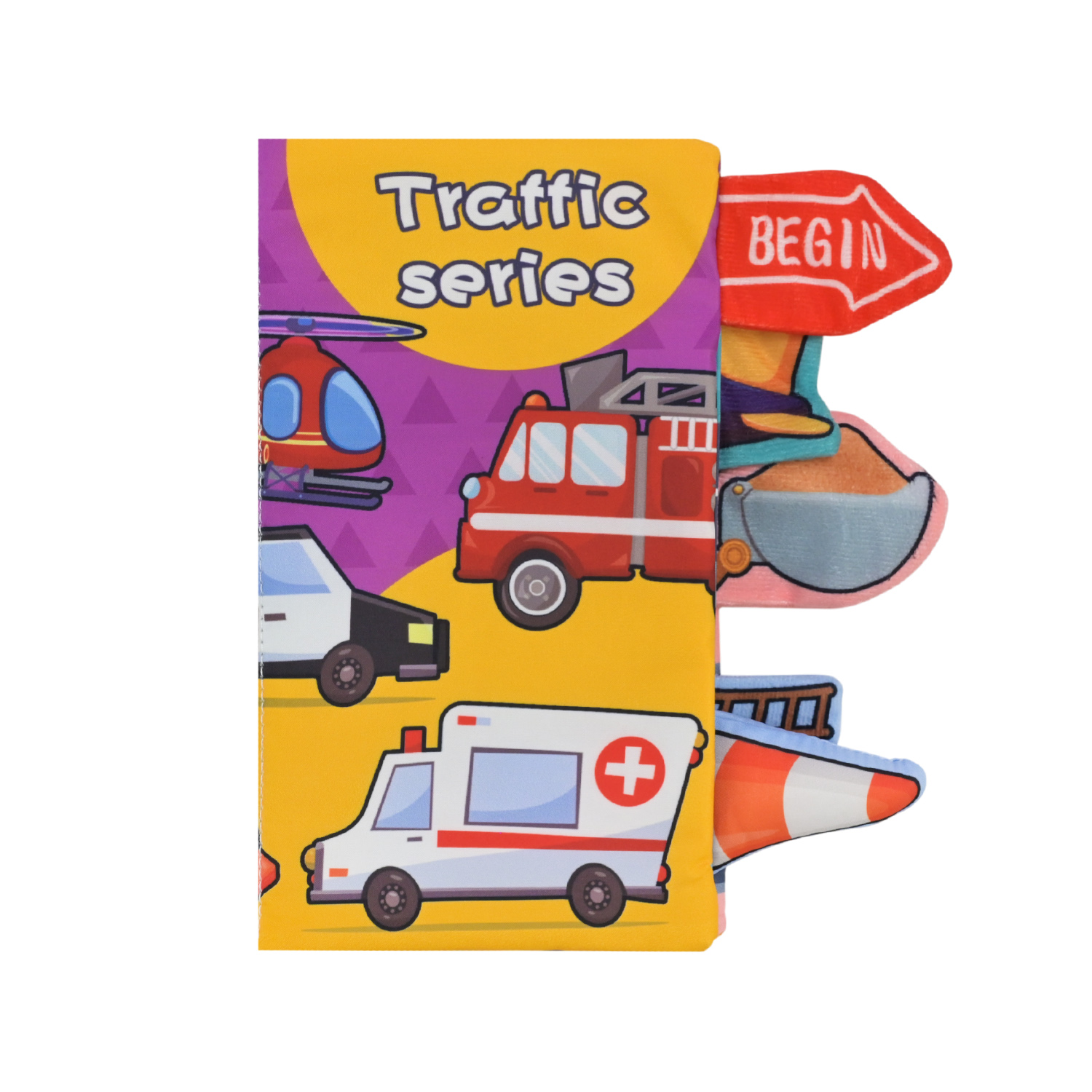 • Тактильні елементи — сторінки оздоблені м’якими текстильними хвостиками, вушками, елементами транспорту, які можна мацати, тягнути або гризти.