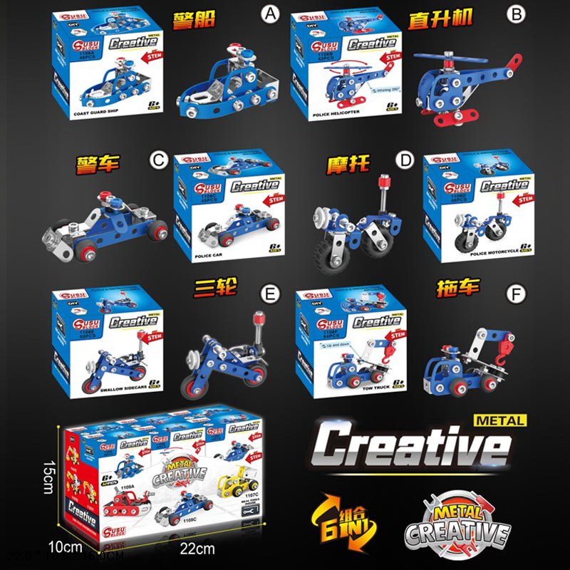Конструктор мет. арт. 1108 (432шт/2) 48-64дет, 6 видів,36дисп по 12шт короб 22*15*10см,