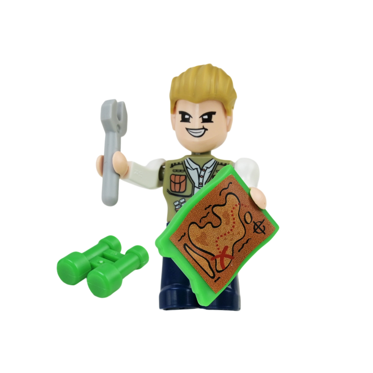 • Аксесуари — бінокль, гайковий ключ, мапа — створюють атмосферу справжньої експедиції.