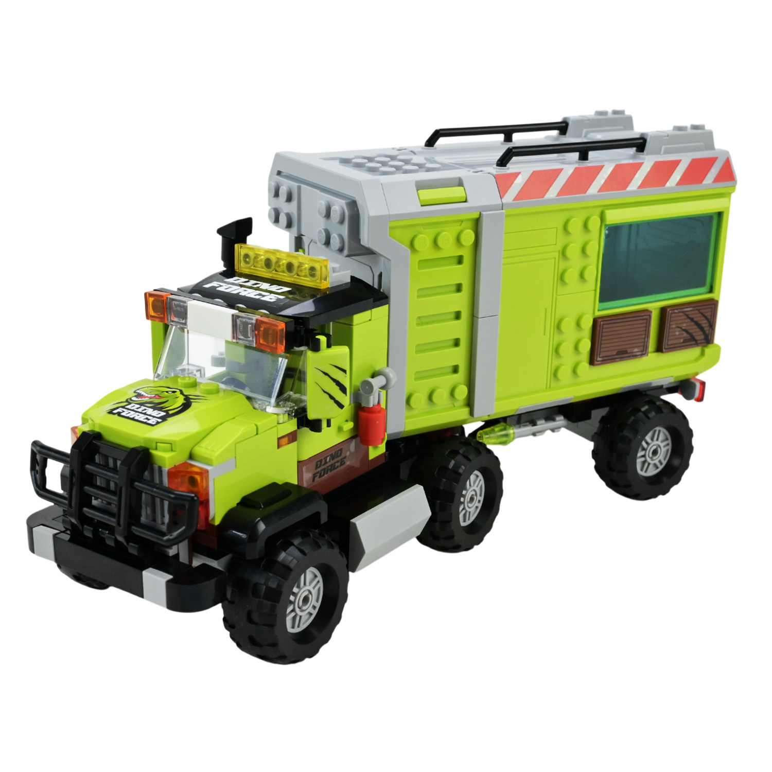 • Рухомий динозавр і функціональний позашляховик: рухаються лапи, голова, щелепа, відкривається багажник.