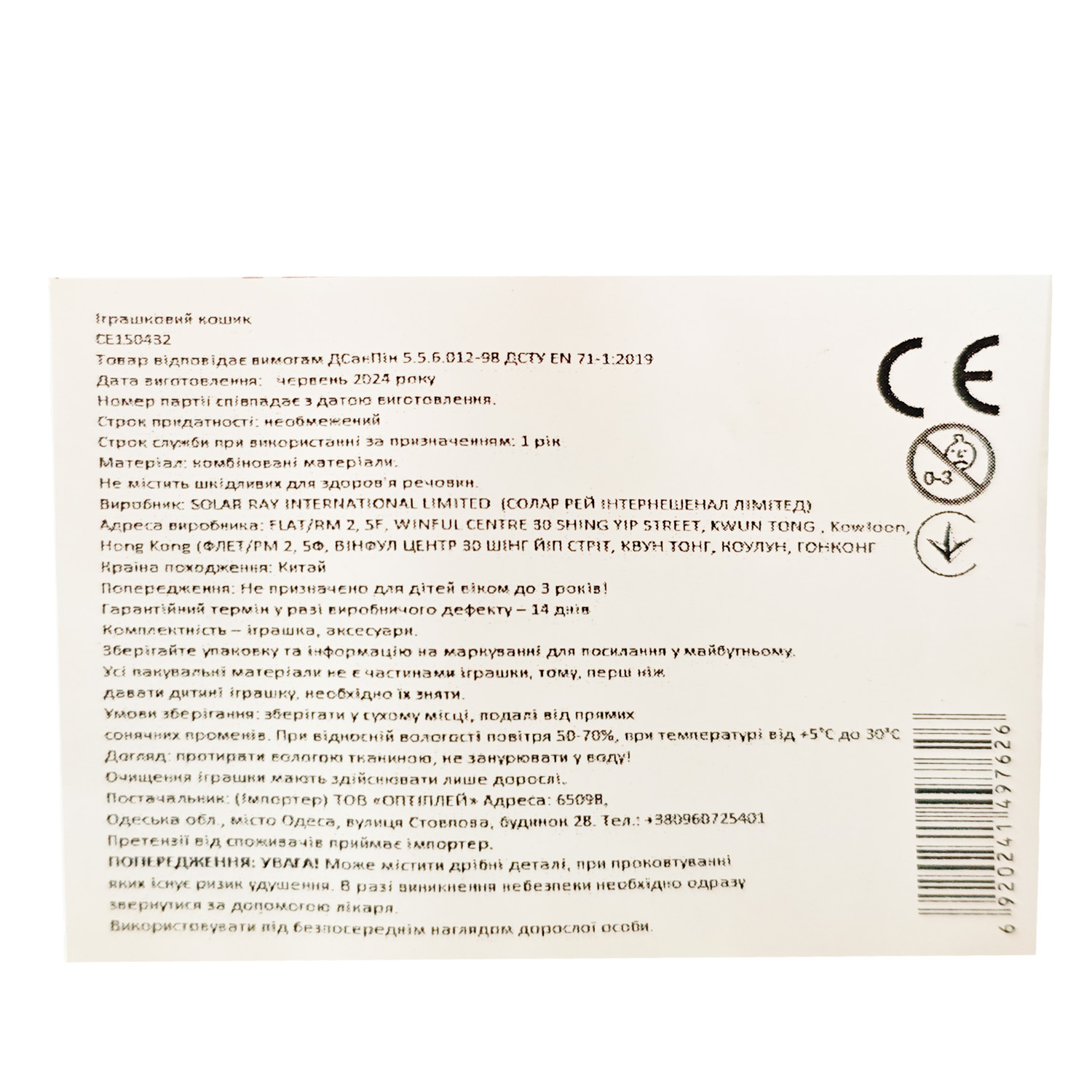 – Виготовлений з міцних, нетоксичних матеріалів, безпечних для дітей;
