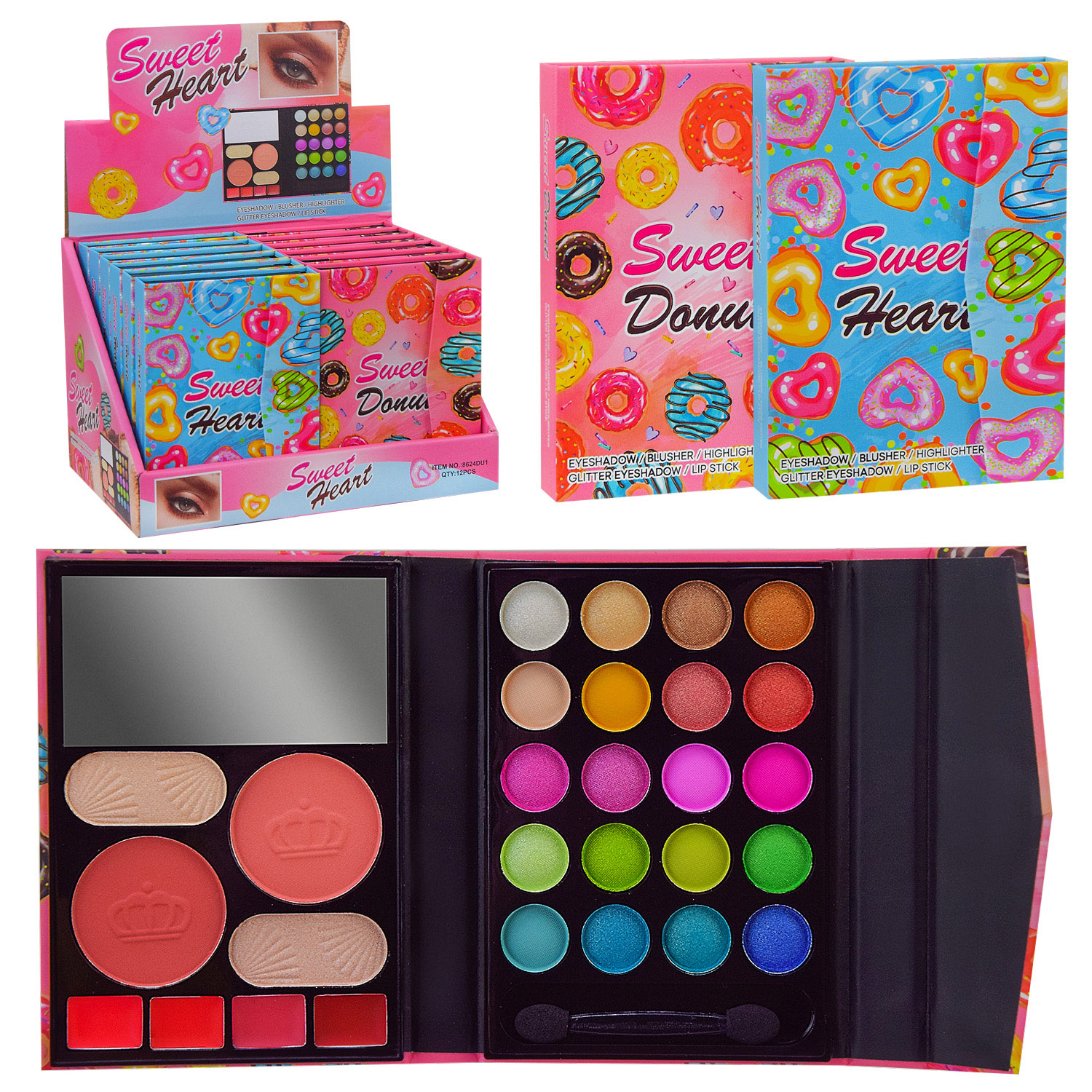Косметика арт. 8624 DU1 (192шт) 16д.б.*12шт; палетка, мікс 2 вида, в дисплей боксі, ціна за 1 шт. 12*2*9см