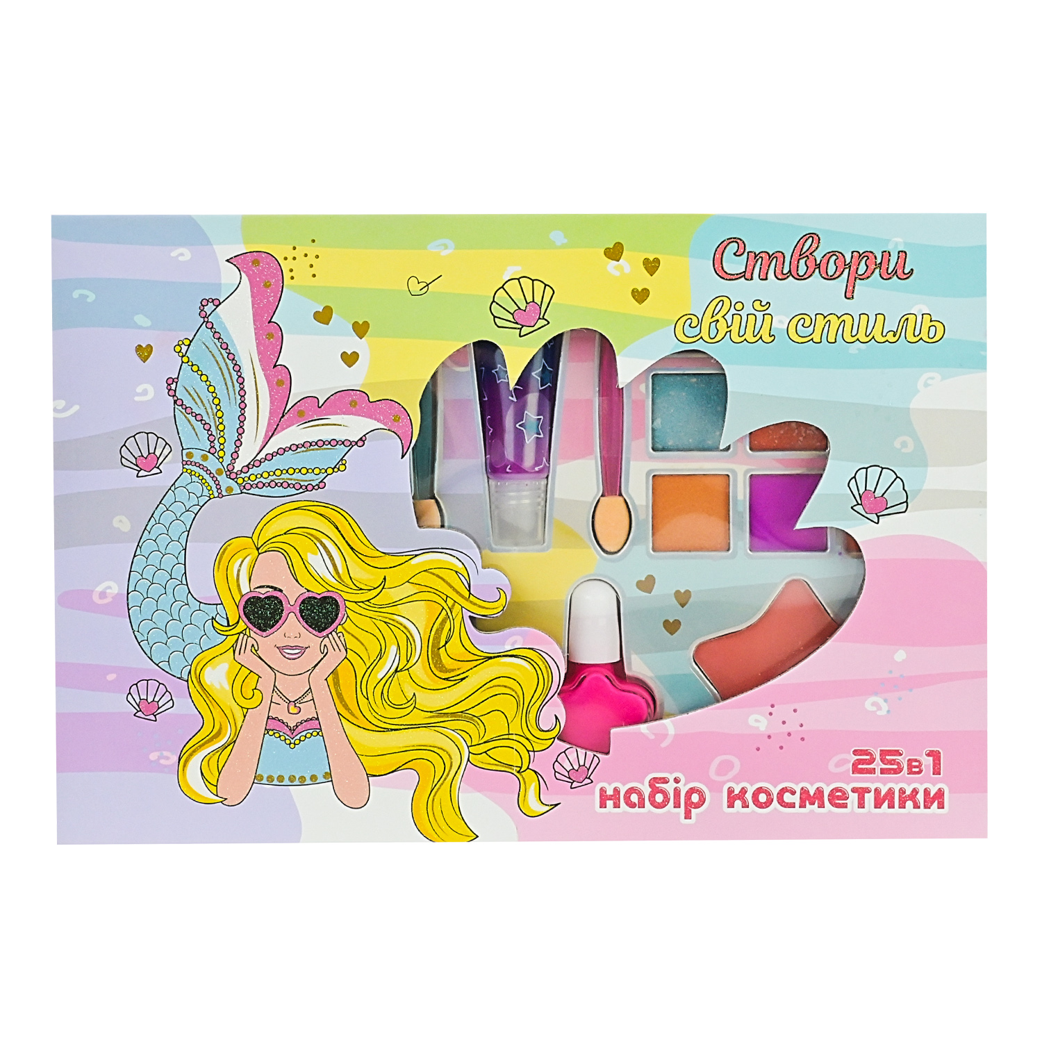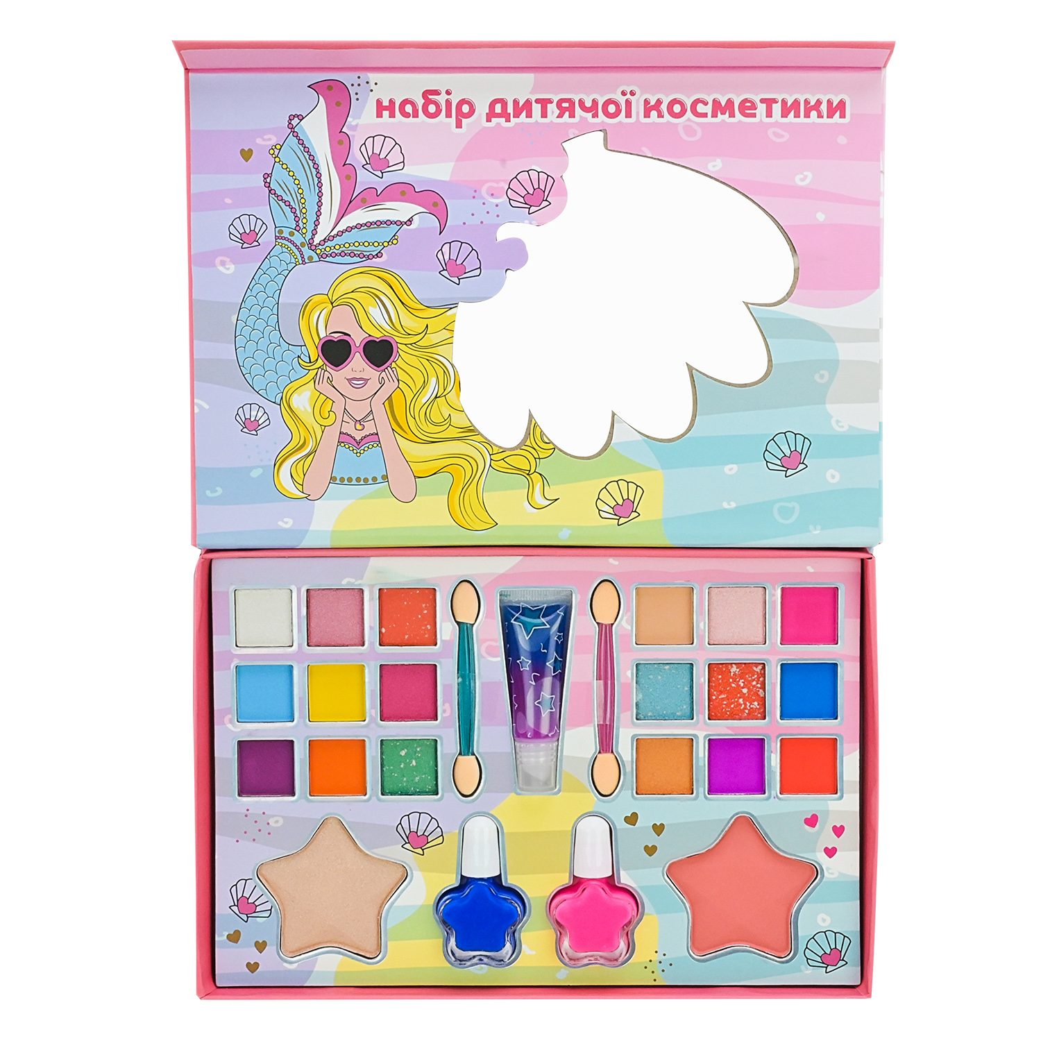 Набір дитячої косметики 25 в 1-му, зроблений в стильному, мультяшному дизайні та у вигляді розкладної палетки – мрія кожної дівчинки. Приголомшливий набір із чудовим рожевим дизайном включає все необхідне для створення чудового образу. Велика палітра кольорів допоможе створити чарівний макіяж і стати ще красивішою.