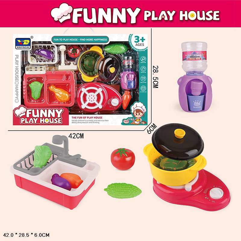 • Мийка з краном і кулером — імітація справжнього миття посуду та наливання води.