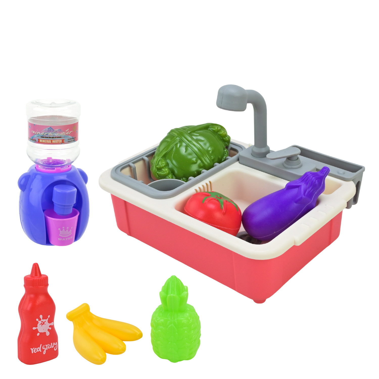 у комплект входять багато аксесуарів для гри. продукти, мийка, кулер,та аксесуари