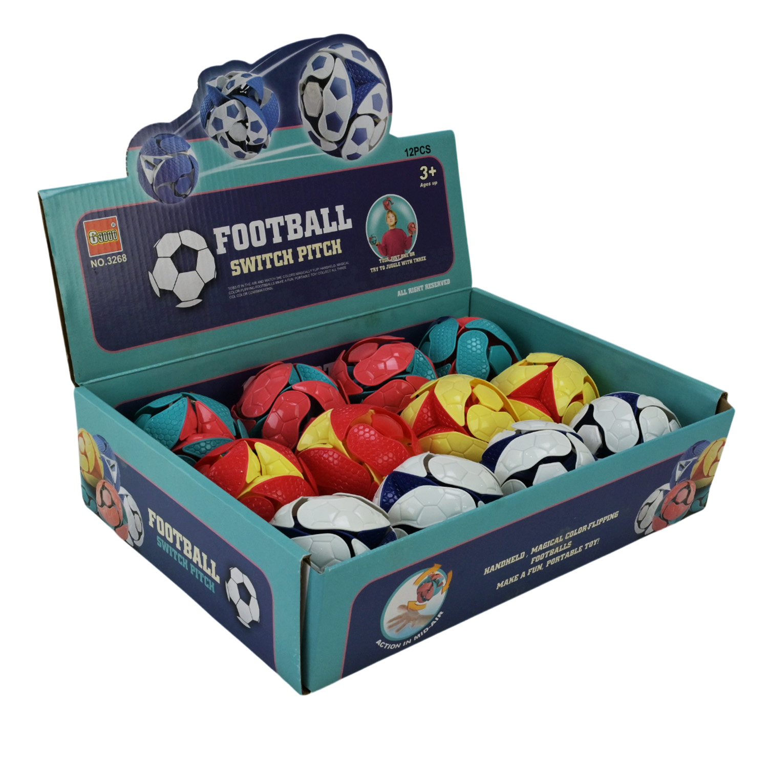 Куля – трансформер арт. 3268 (360шт/2) 30уп по12 шт, розкривається в повітрі, 3 кольори мікс,,р-р8*8*8см, бокс 32,5*24*8см