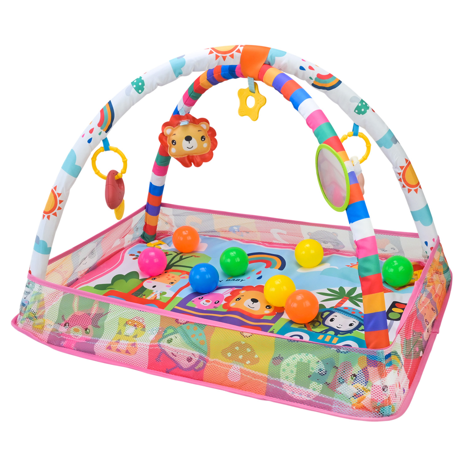 • Килимок має привабливий вигляд із зображенням різних тваринок на природі, що приверне увагу малюка.