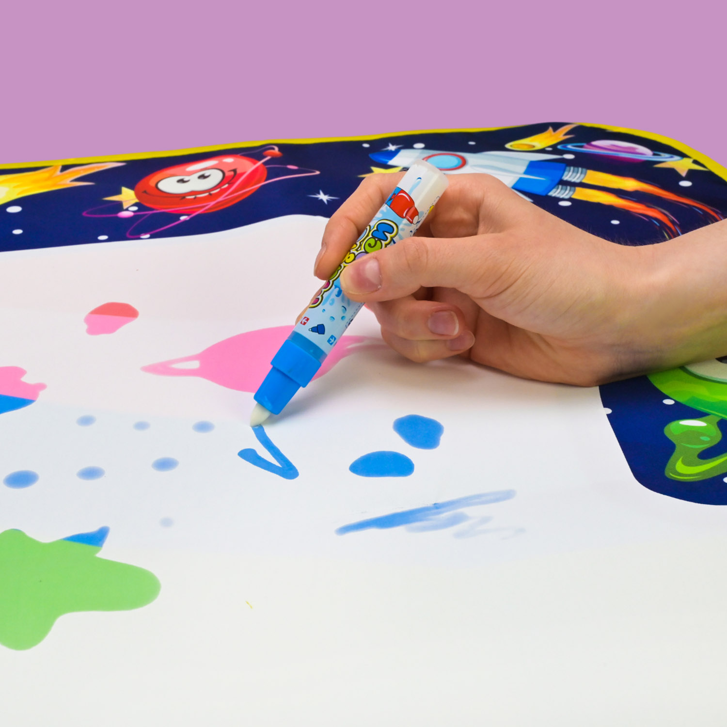 • Малювання водою — потрібно лише наповнити маркер водою, і можна створювати шедеври прямо на поверхні килимка.