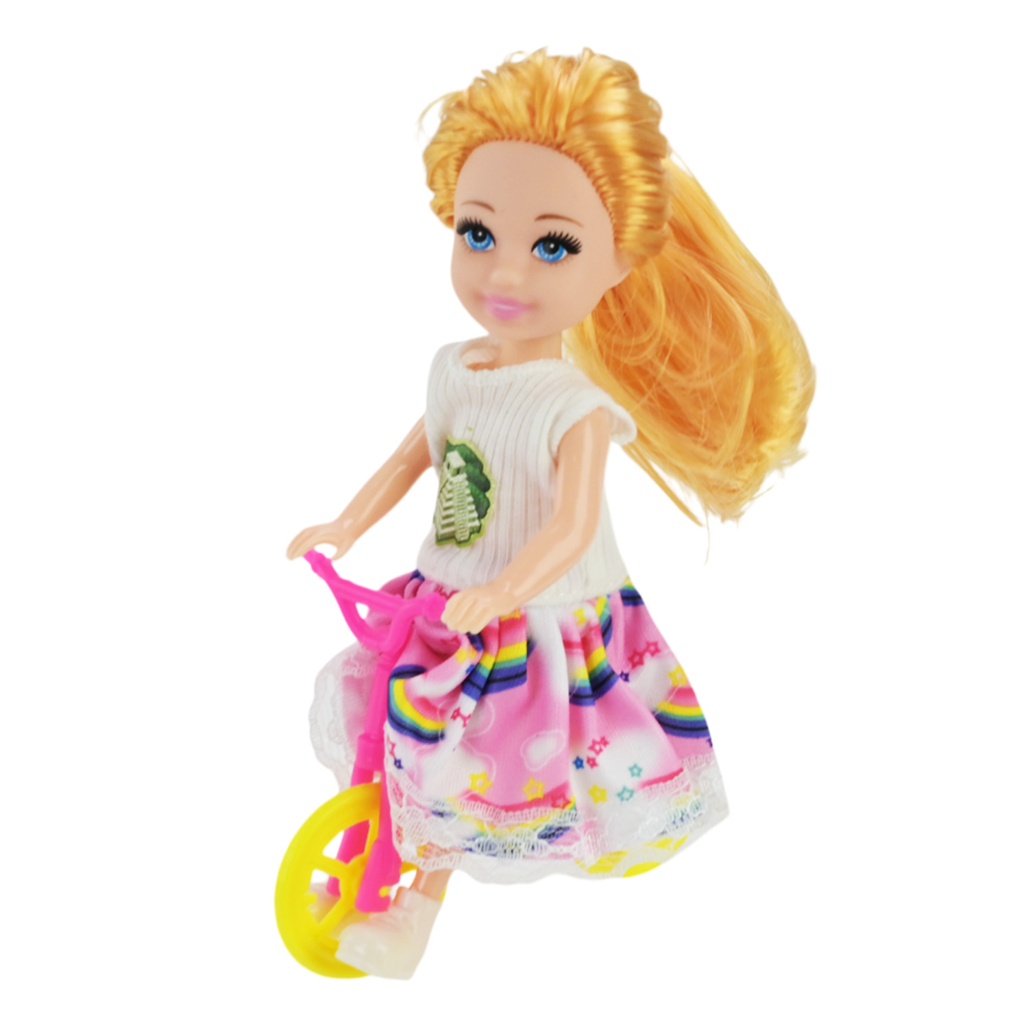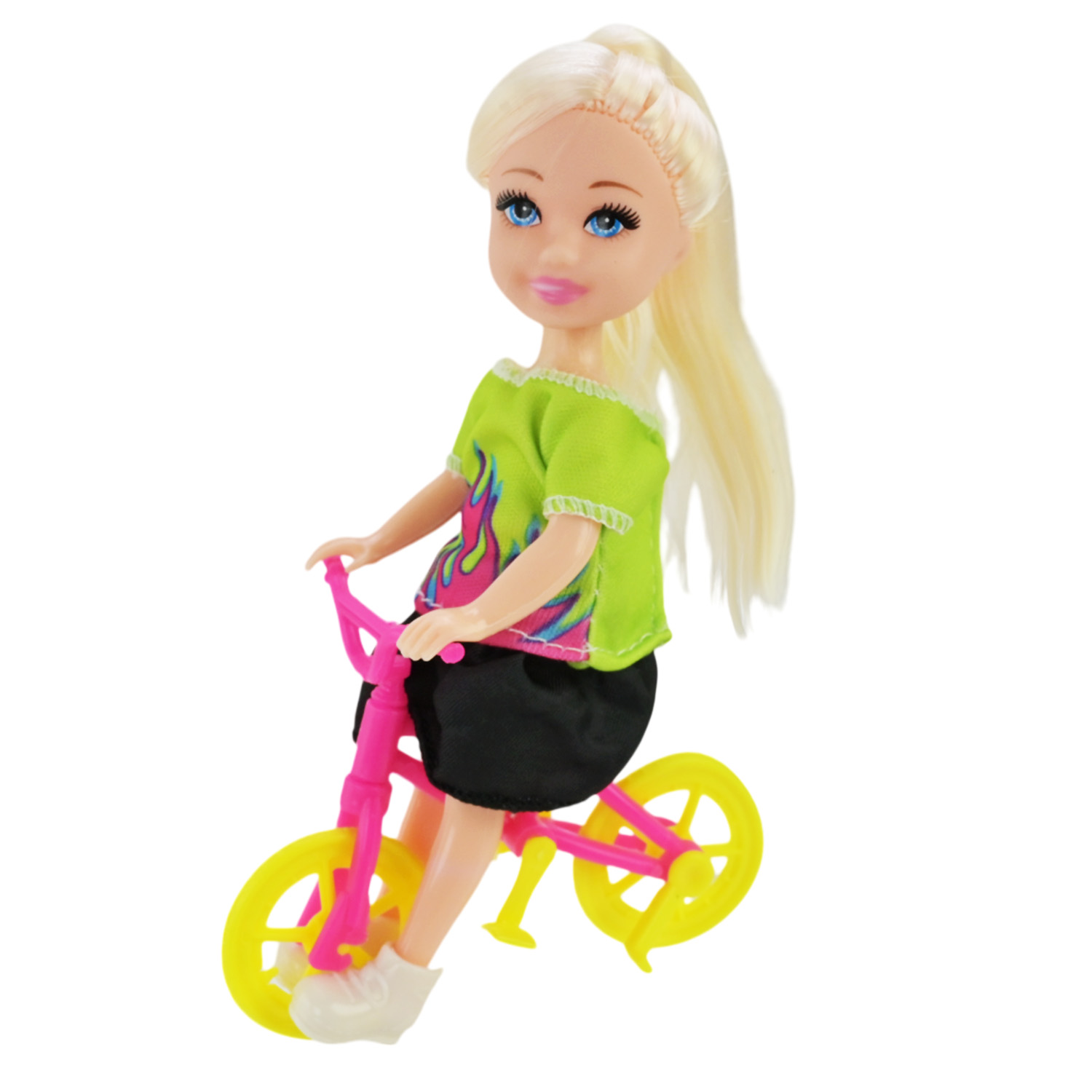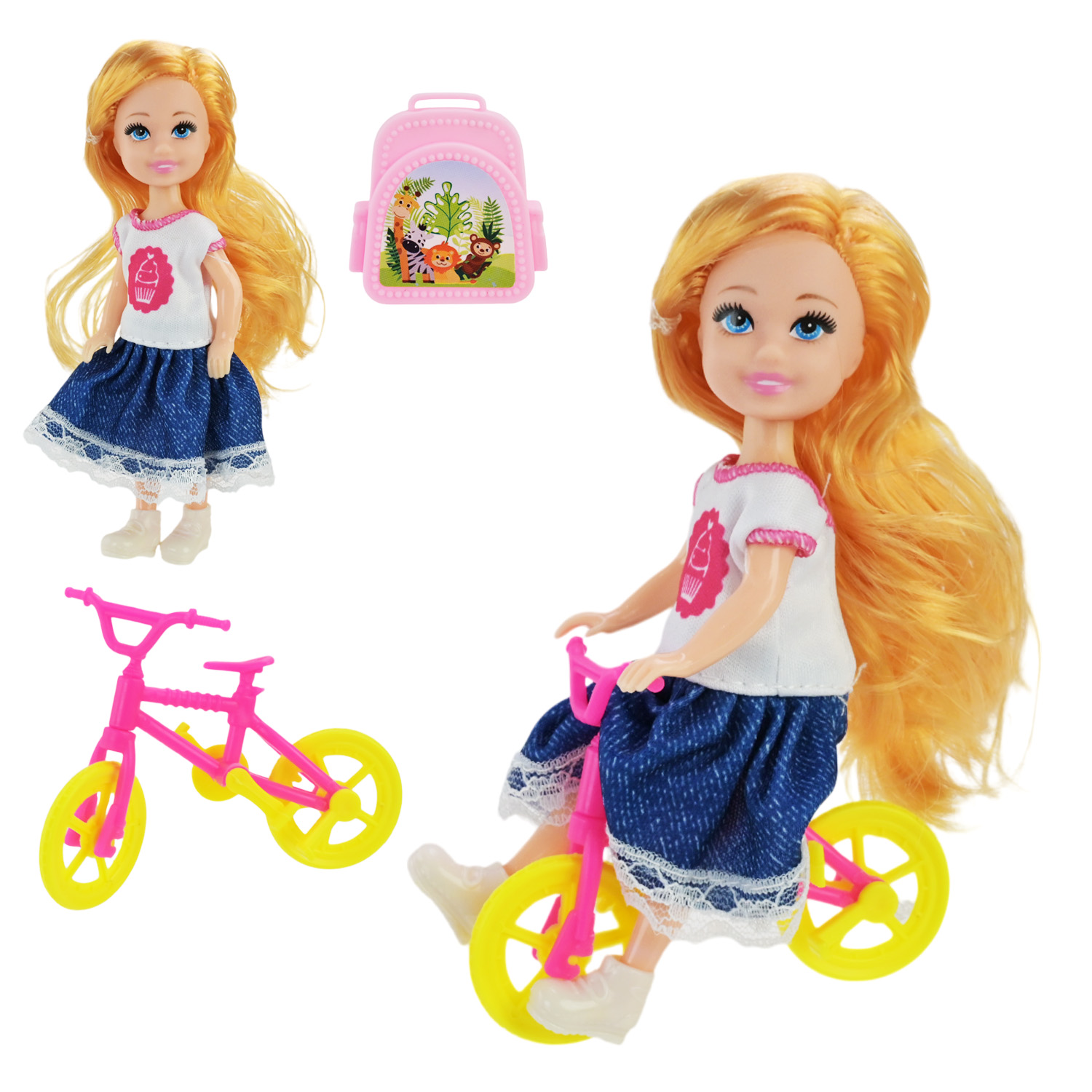 • У комплекті йде маленький велосипед, на який можна посадити ляльку.