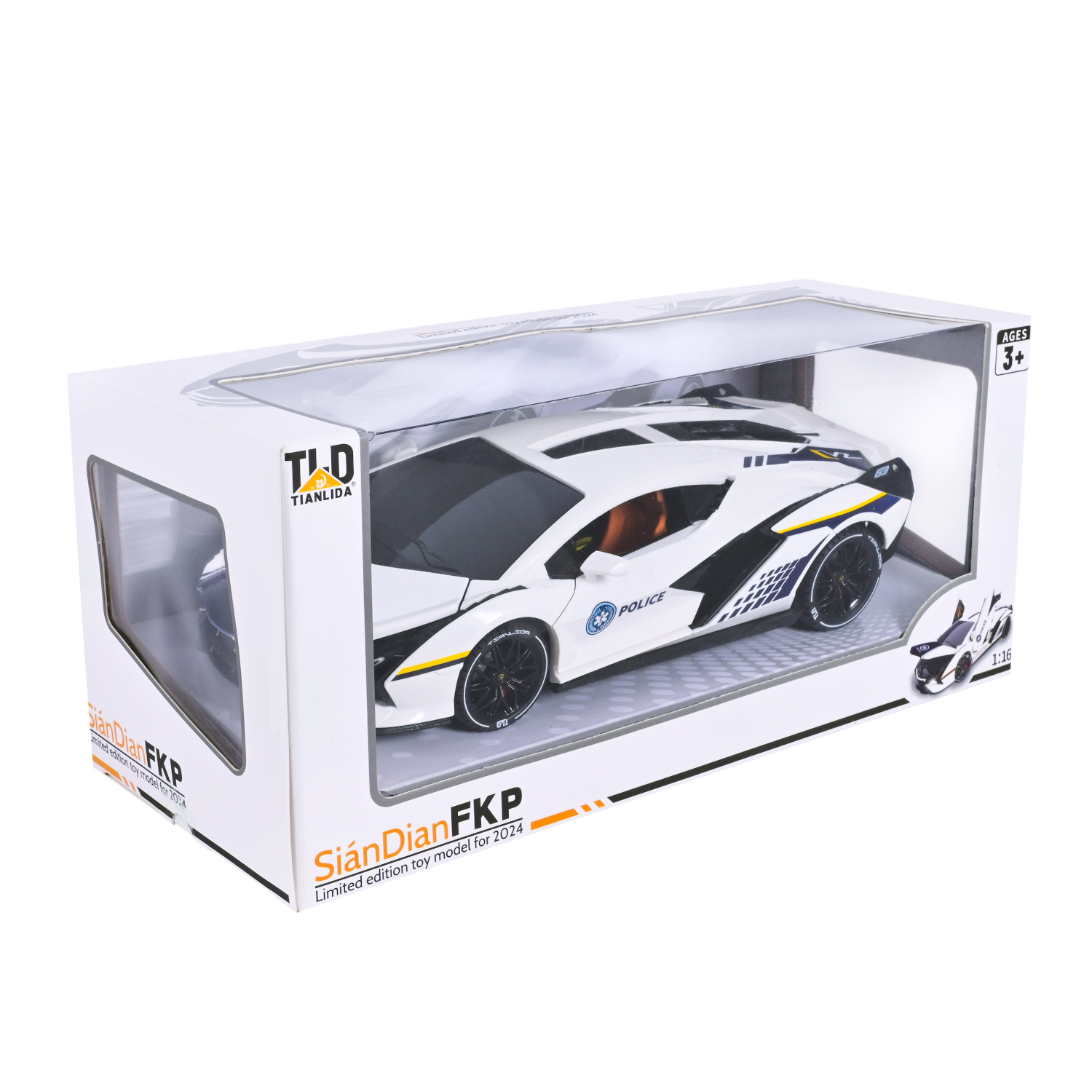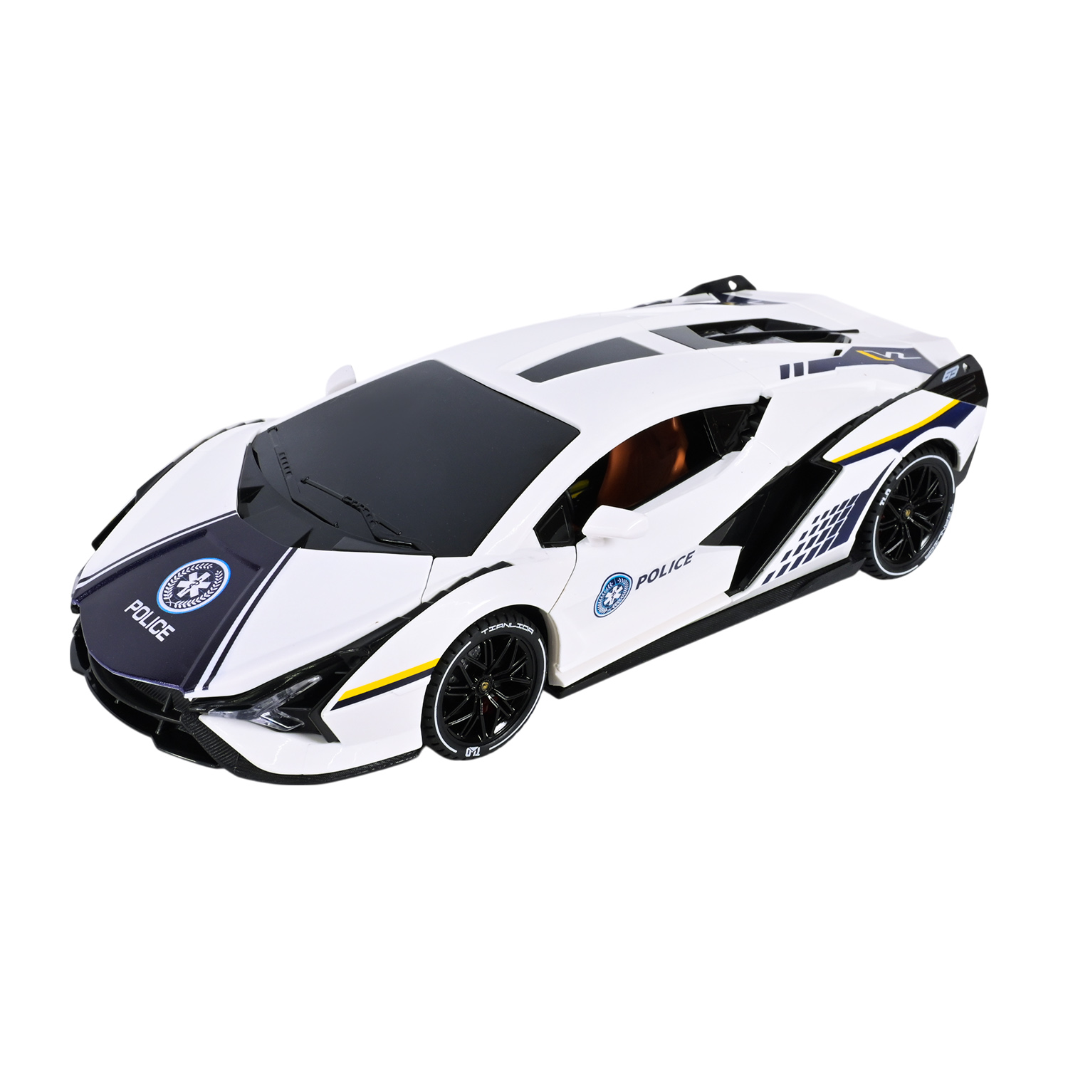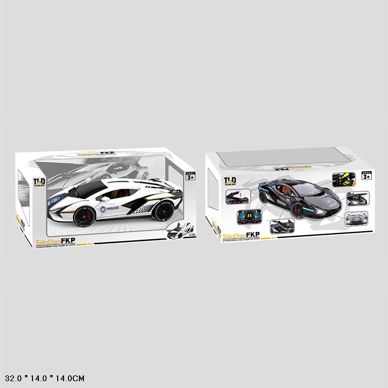 •Дизайн у стилі Lamborghini Centenario: корпус іграшки нагадує елітний спорткар у поліцейському виконанні.