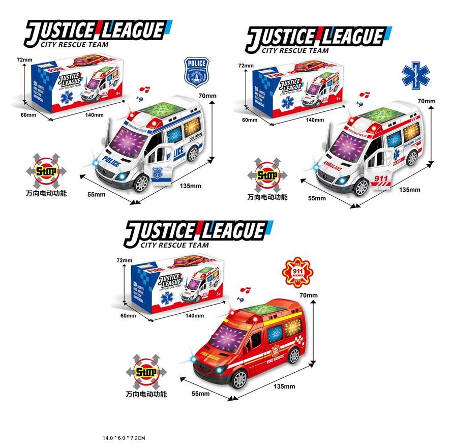 Машина батар арт. 89-602A/603A/601A (180шт/3) Поліція,Швидка,Пожежна 3 види,короб. 14*7*6см