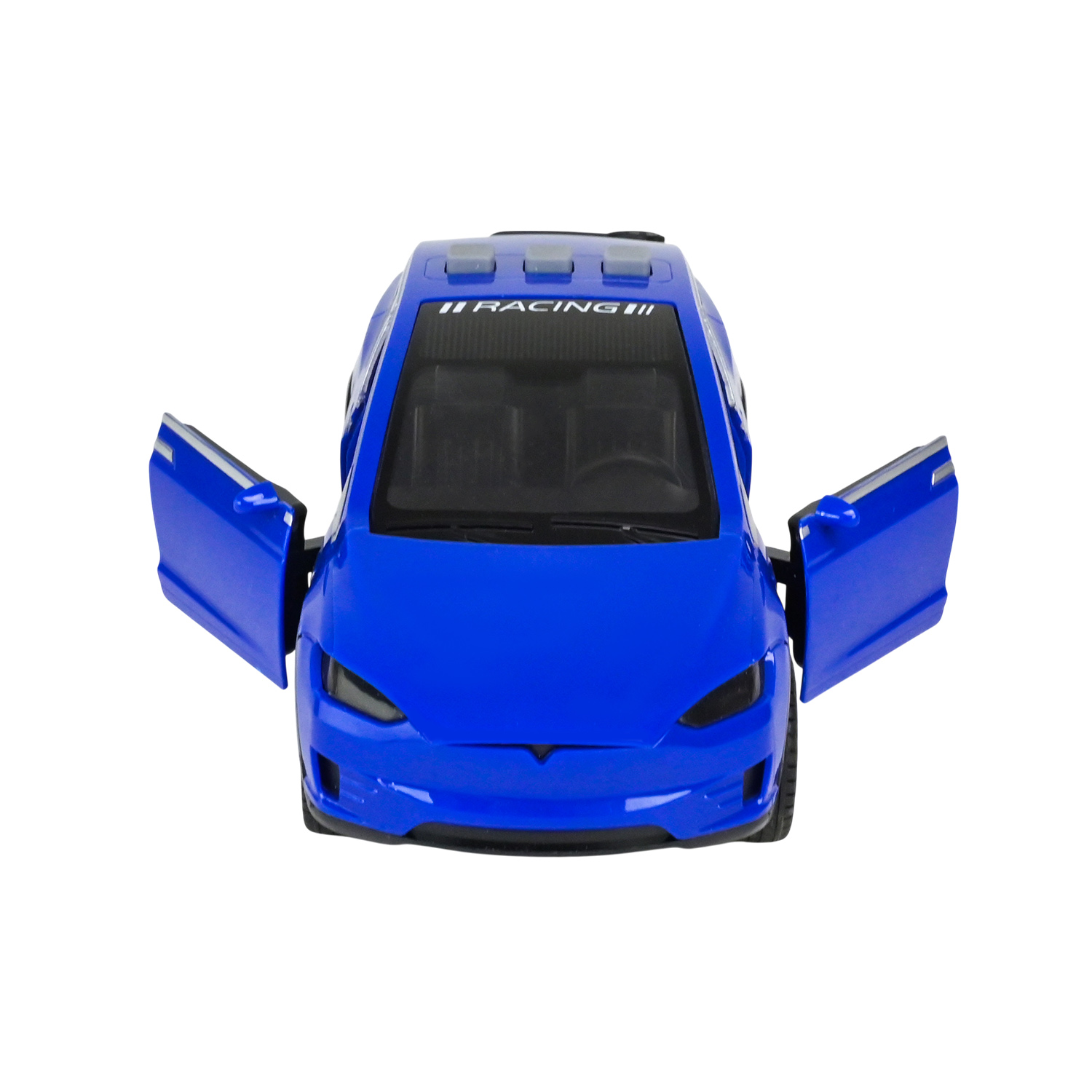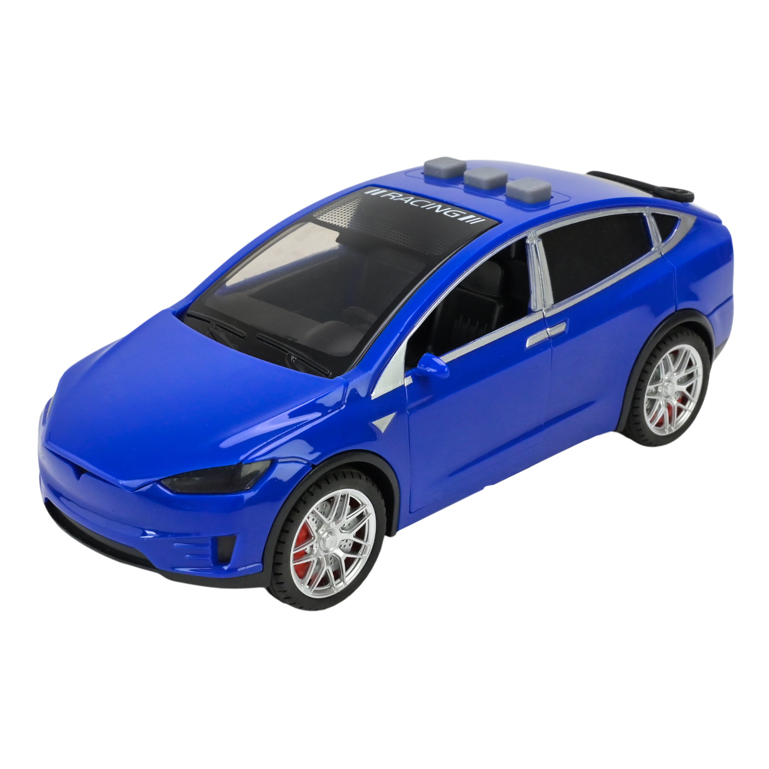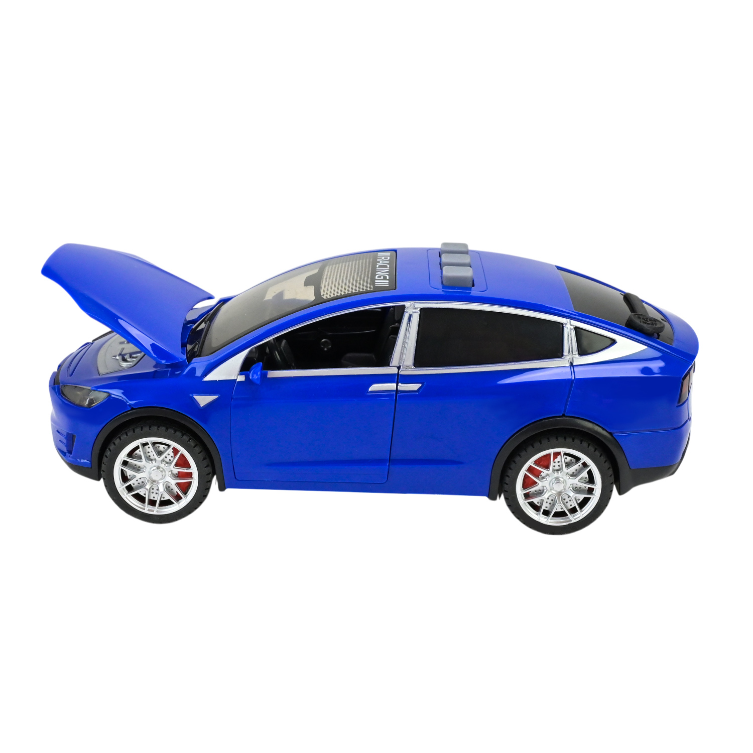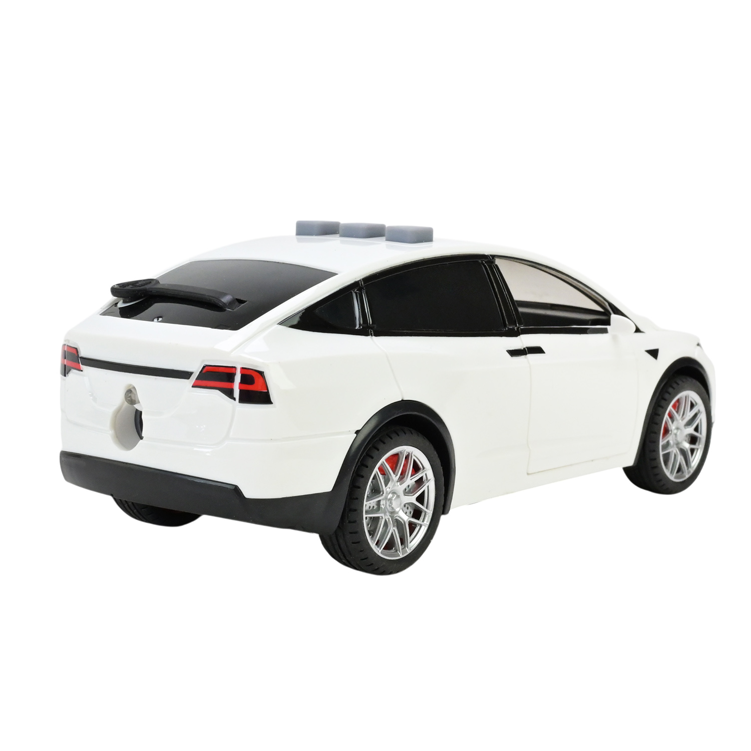 • Дизайн у стилі Tesla — іграшковий автомобіль виконано в сучасному, впізнаваному стилі Tesla з плавними лініями, футуристичними елементами та деталями, що нагадують справжній електрокар.