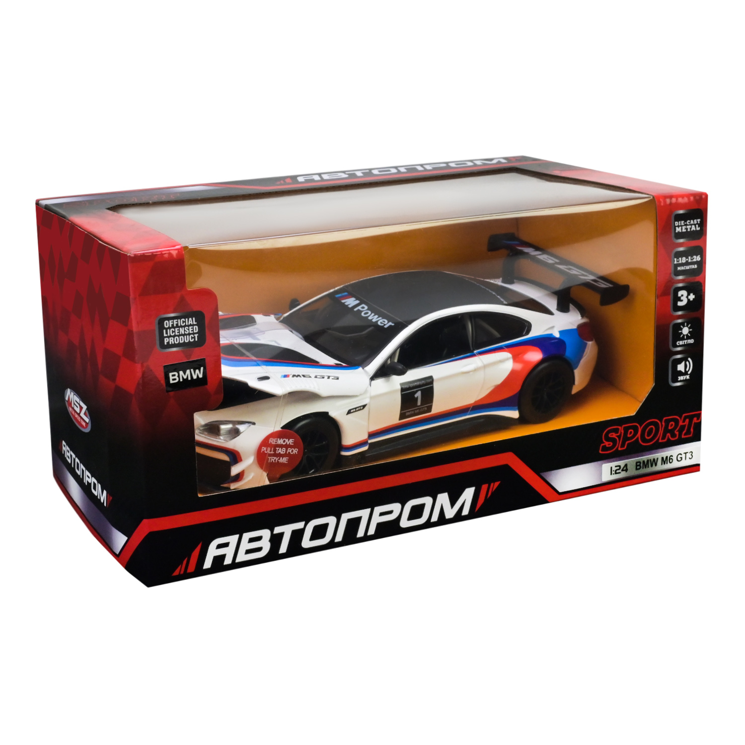 Машина мет. АВТОПРОМ арт. 68255B(A) (12шт/2) 1:24 BMW M6 GT3,бат, світ.,зв,відк.двері,капот,багаж. короб. 25*10*14см