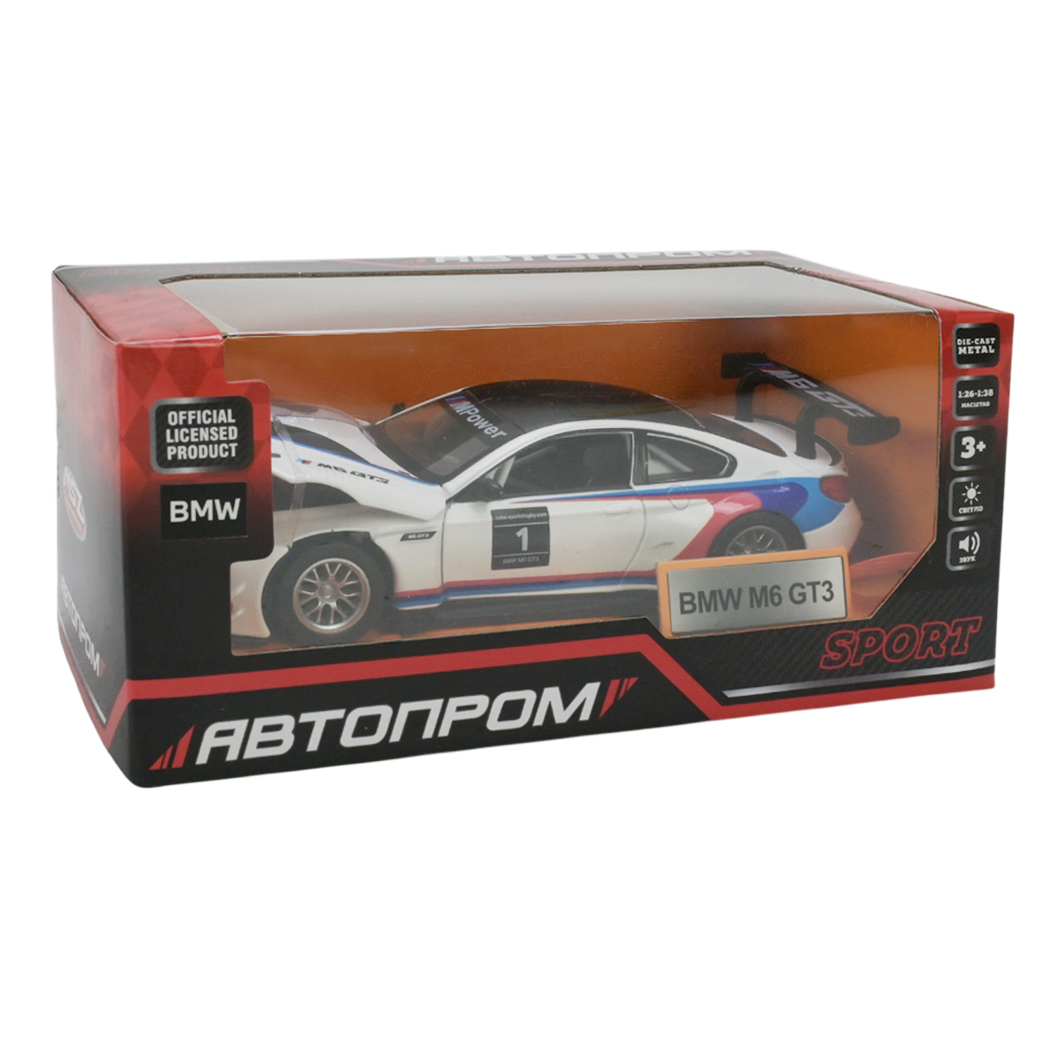 Машина мет. АВТОПРОМ арт. 68325 (48шт/2) 1:32 BMW M6 GT3 ,батар, світло,звук,відкр..двері, короб. 18*9*9см